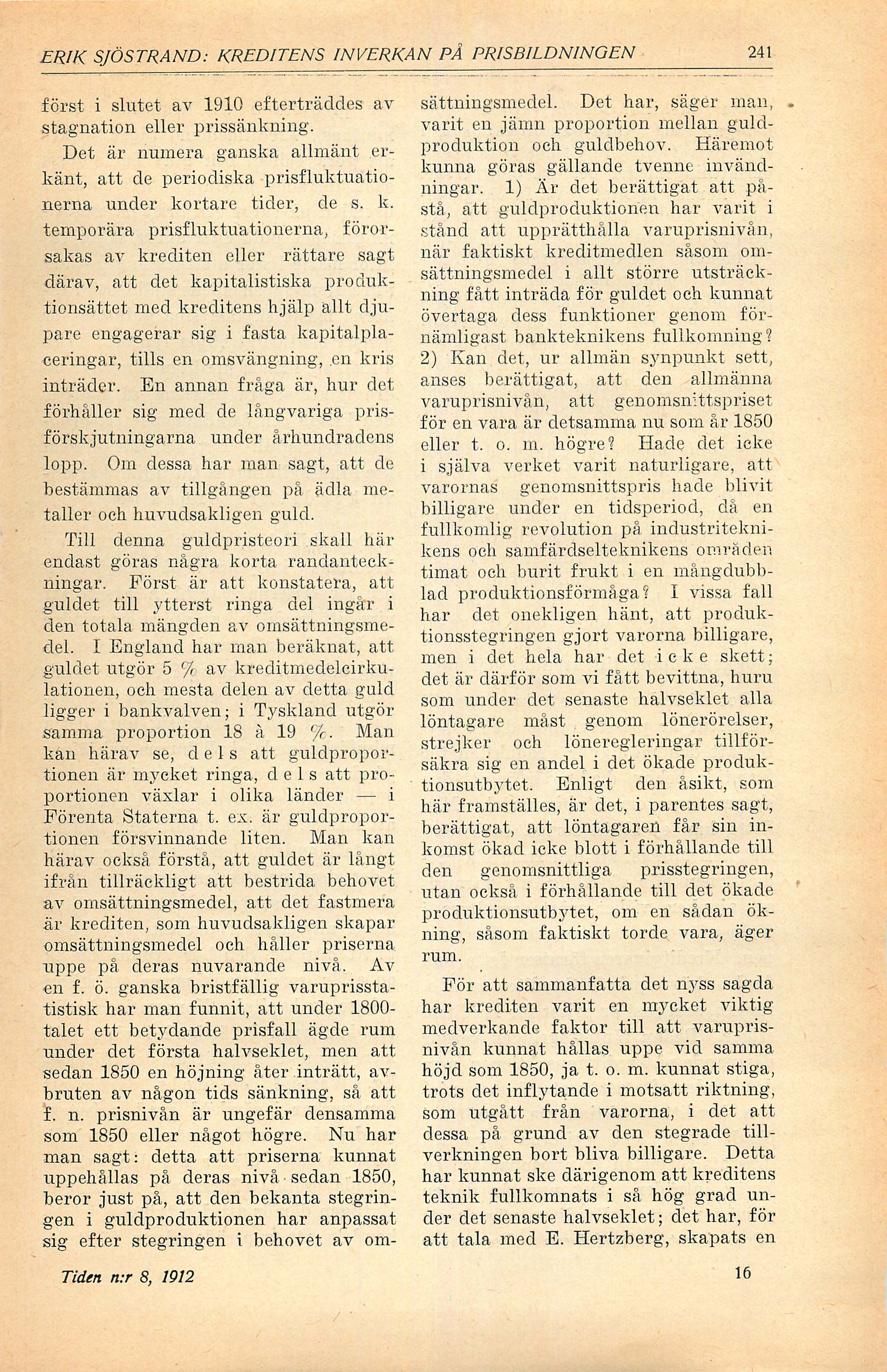 ERIK SJÖSTRAND: KREDITENS INVERKAN PÅ PRISBILDNINGEN 241