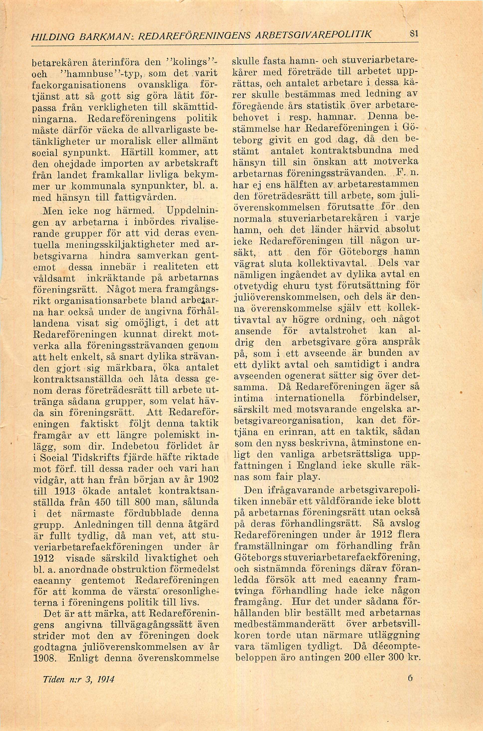 Full resolution (JPEG) - On this page / på denna sida - N:r 3, 1914 - Barkman, Hilding: Redareföreningens arbetsgivarepolitik