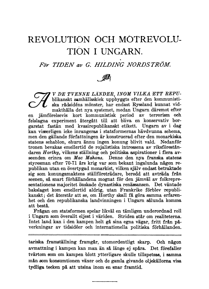 Full resolution (TIFF) - On this page / på denna sida - N:r 7, 1924 - Hildén, Kaarlo: Kampen om oljan - Nordström, G. Hilding: Revolution och motrevolution i Ungarn