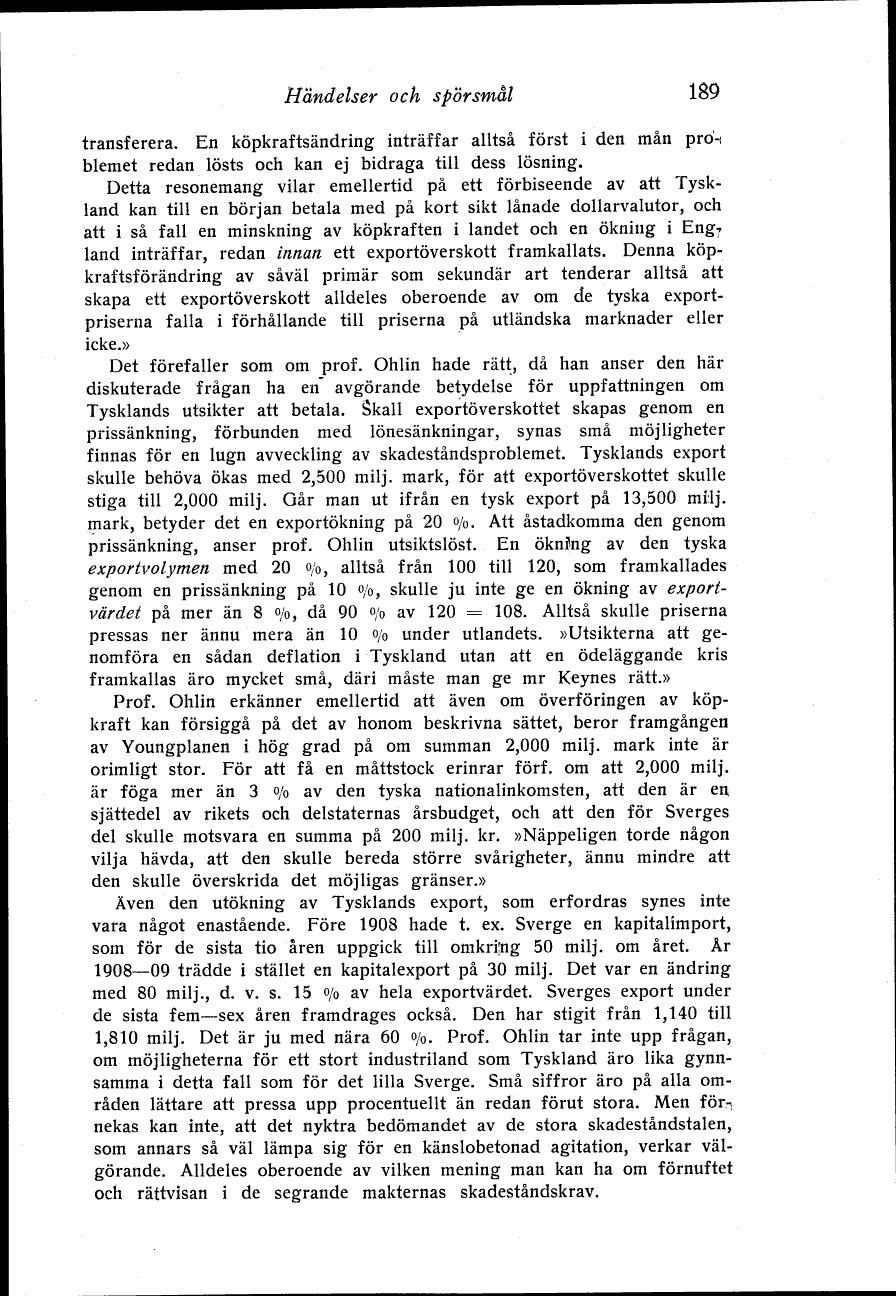 prissänkning, anser prof. Ohlin utsiktslöst. En öknflng av den tyska