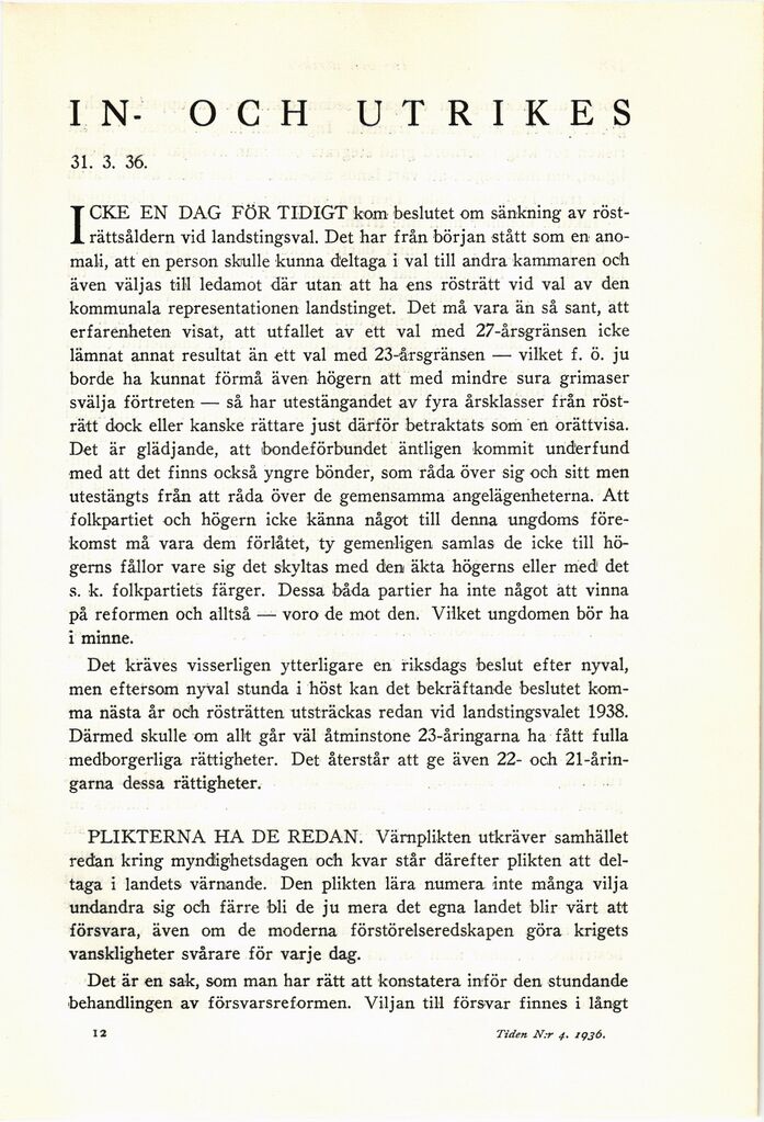 Full resolution (JPEG) - On this page / på denna sida - N:r 4, 31 mars 1936 - In- och utrikes