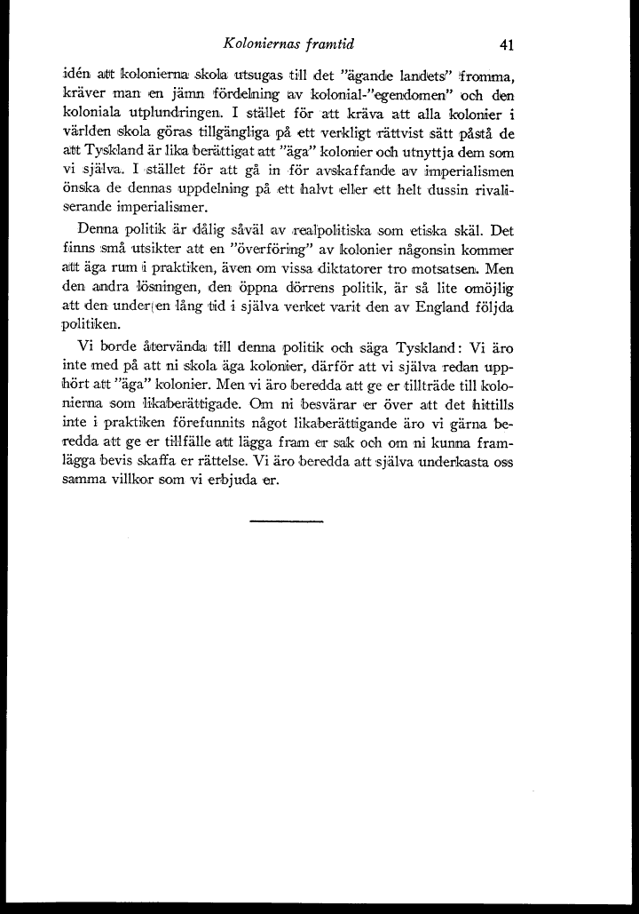 upphört att "äga" kolonier. Men vi äro beredda att ge er tillträde till