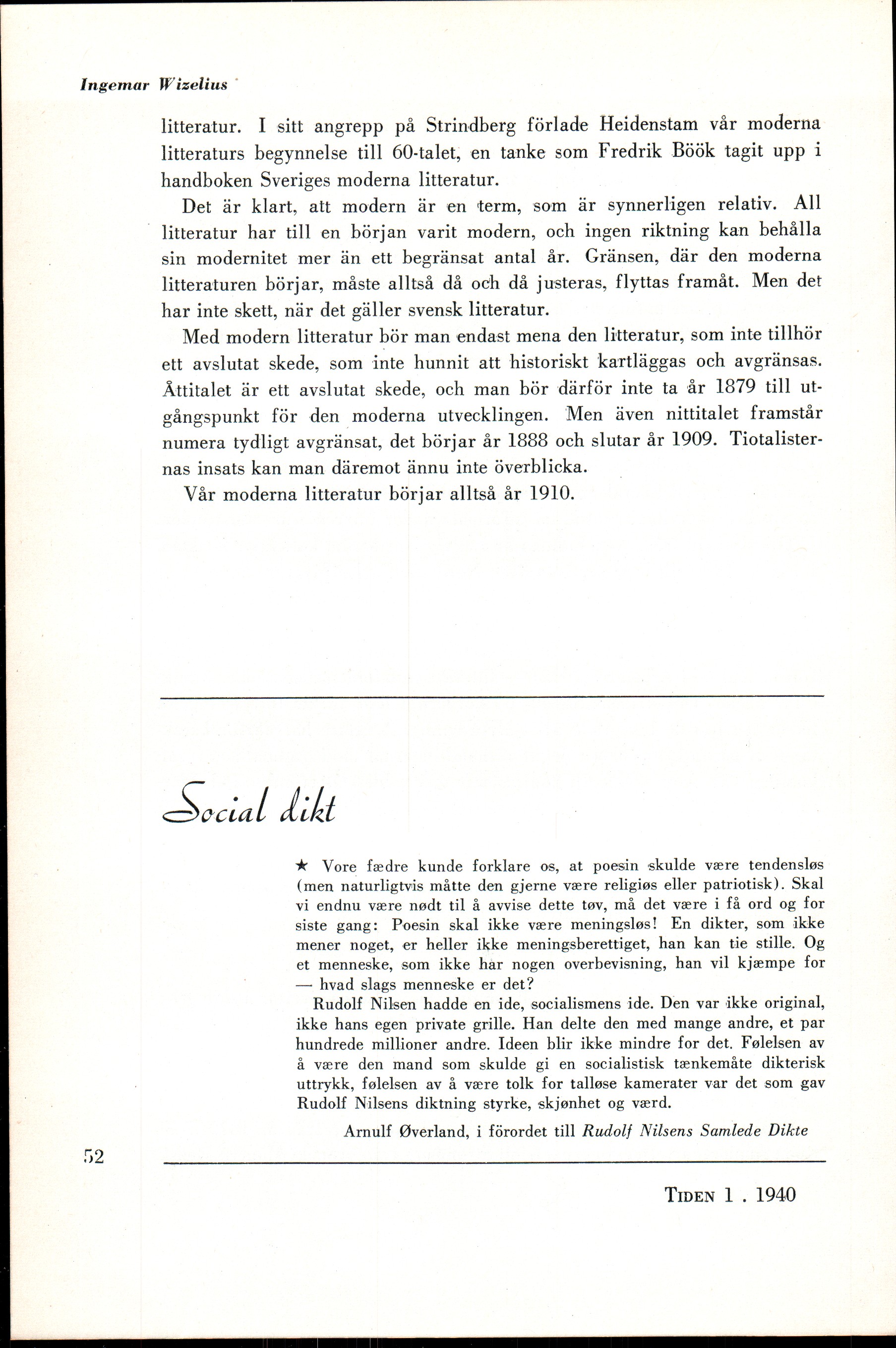 Full resolution (JPEG) - On this page / på denna sida - N:r 1, 1940 - Wizelius, Ingemar: Storstrejken och litteraturen - Social dikt