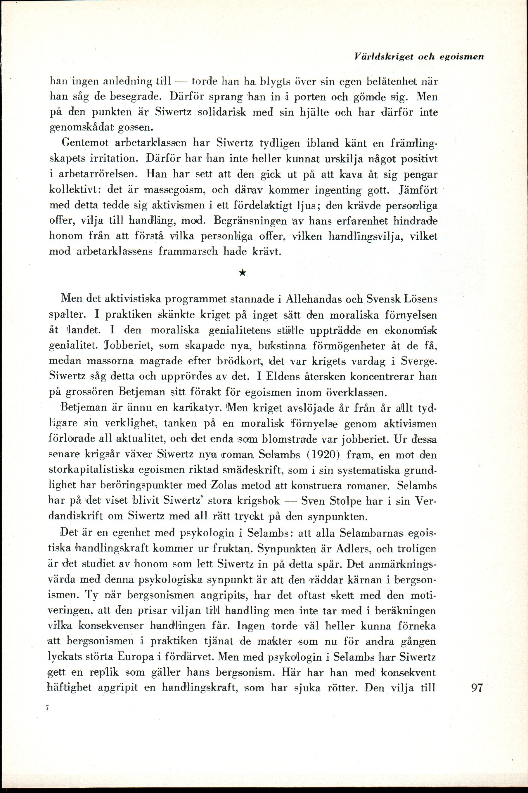senare krigsår växer Siwertz nya roman Selambs (1920) fram, en mot den