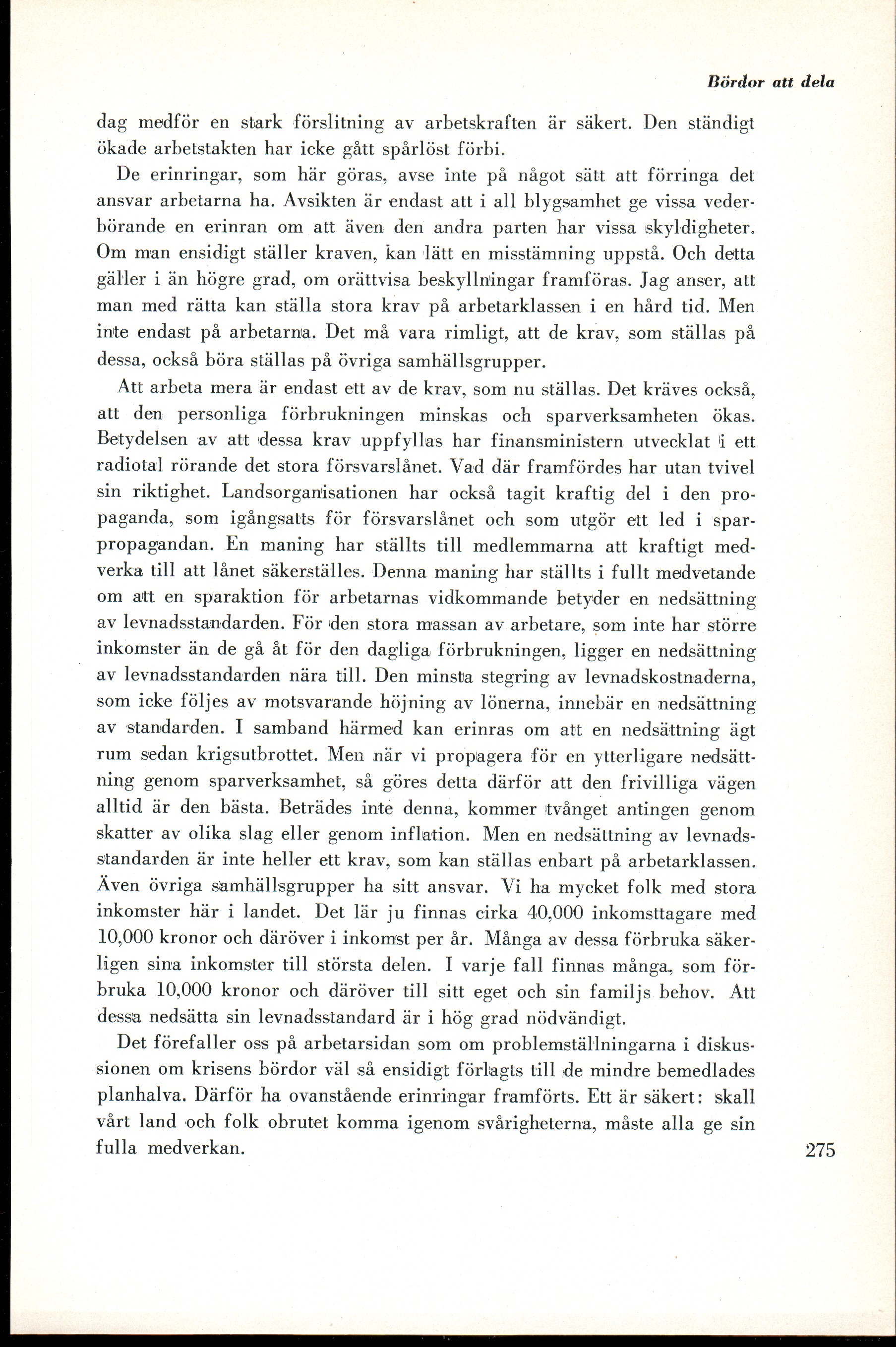 levnadsstandarden är inte heller ett krav, som kan ställas enbart på arbetarklassen.