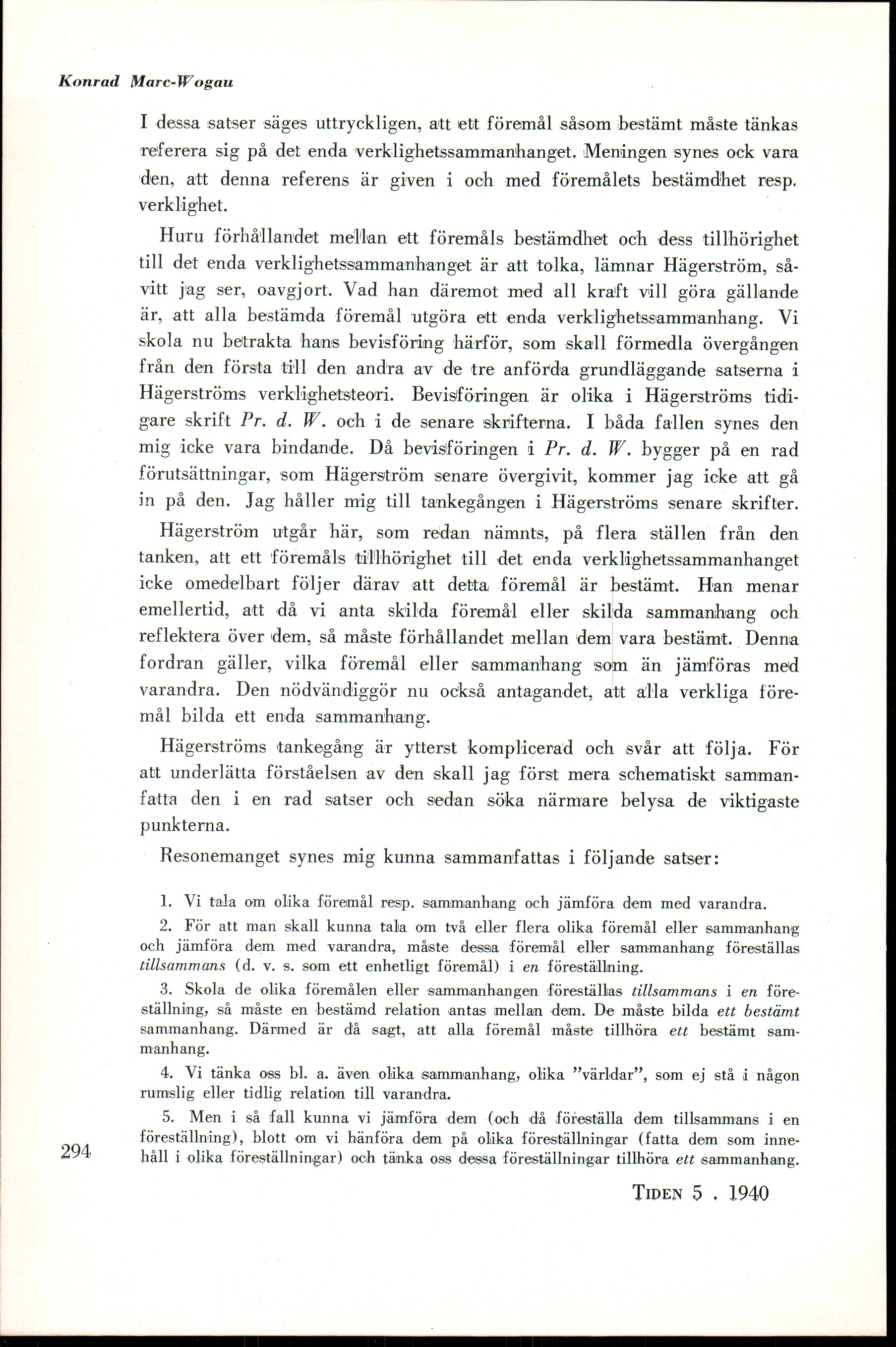 Full resolution (JPEG) - On this page / på denna sida - N:r 5, 1940 - Marc-Wogau, Konrad: Axel Hägerströms verklighetsteori