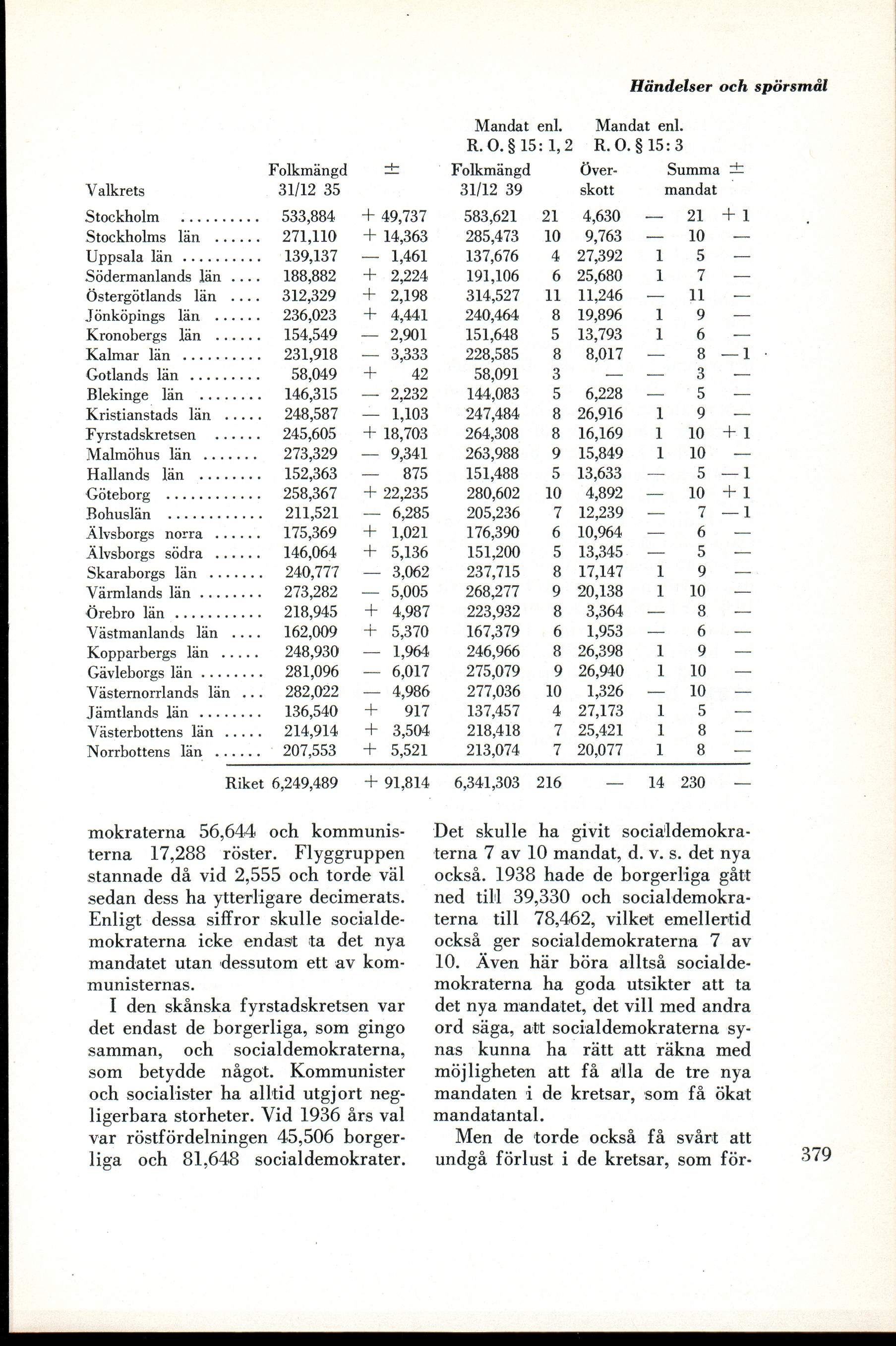 Full resolution (JPEG) - On this page / på denna sida - N:r 6, 1940 - Händelser och spörsmål - Vanner, Al: Andrakammarmandatens fördelning