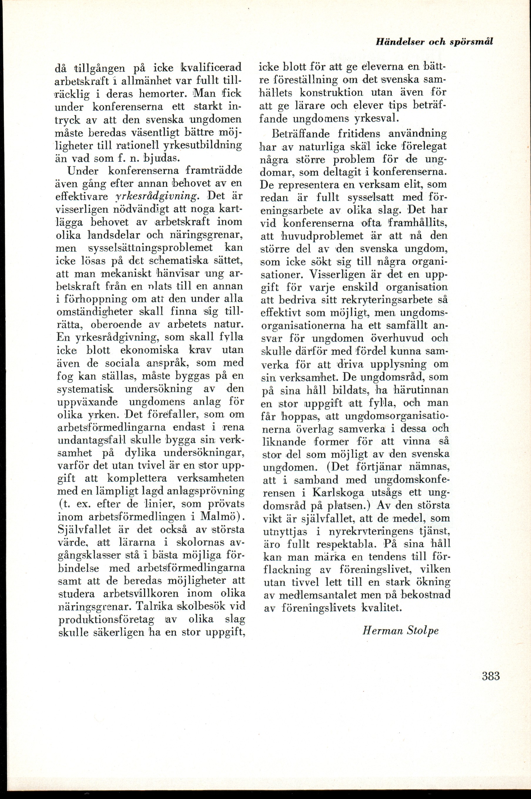 Full resolution (JPEG) - On this page / på denna sida - N:r 6, 1940 - Händelser och spörsmål - Stolpe, Herman: Aktuella sociala ungdomsfrågor