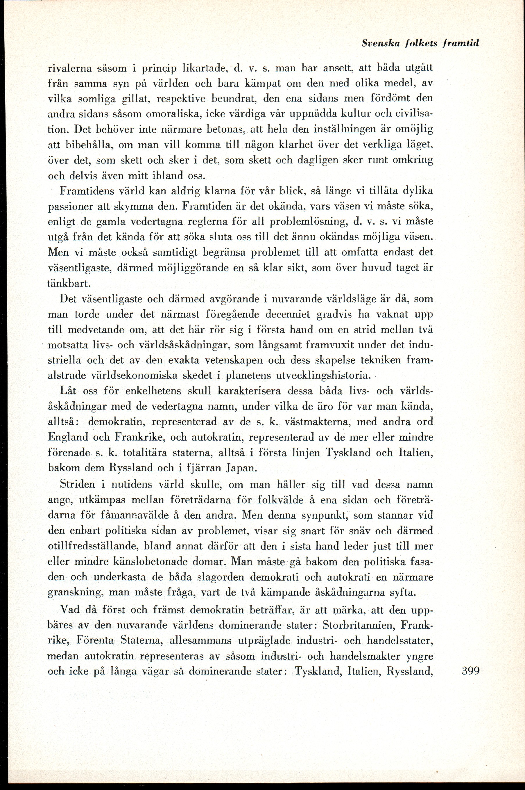 alltså: demokratin, representerad av de s. k. västmakterna, med andra ord