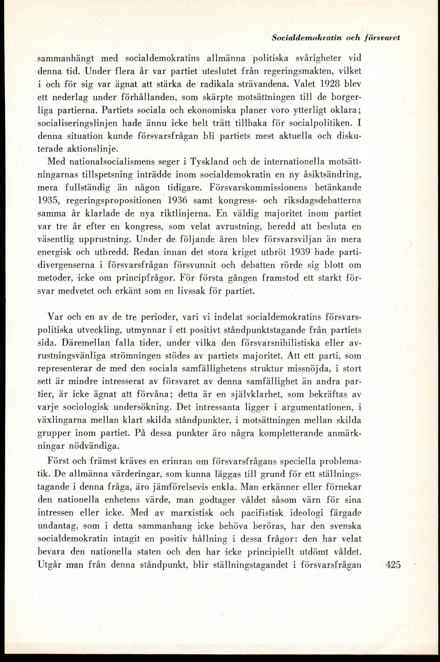 Utgår man frän denna ståndpunkt, blir ställningstagandet i försvarsfrågan 425