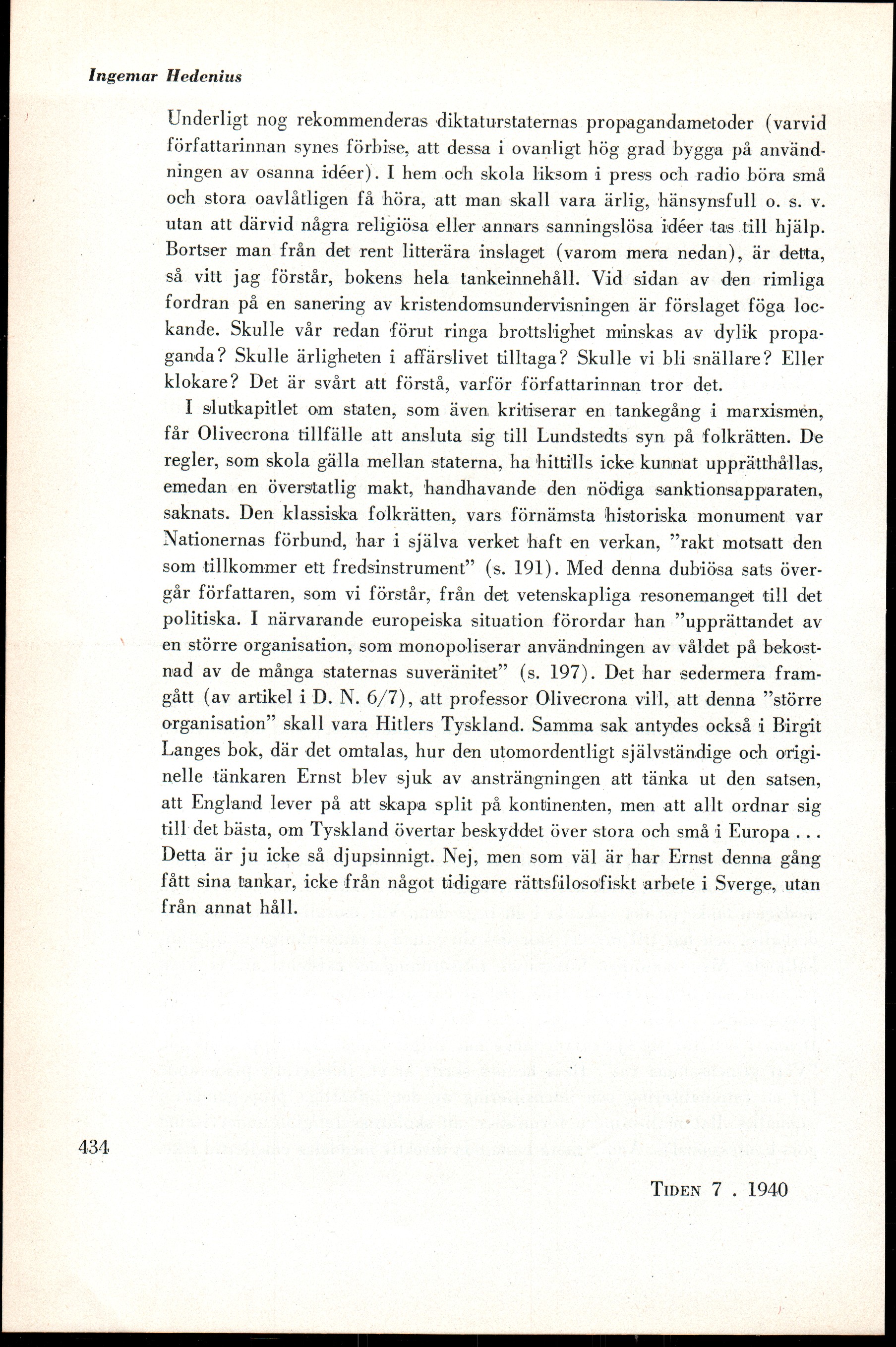 Full resolution (JPEG) - On this page / på denna sida - N:r 7, 1940 - Hedenius, Ingemar: Om lagen och staten som vårt gemensamma väl