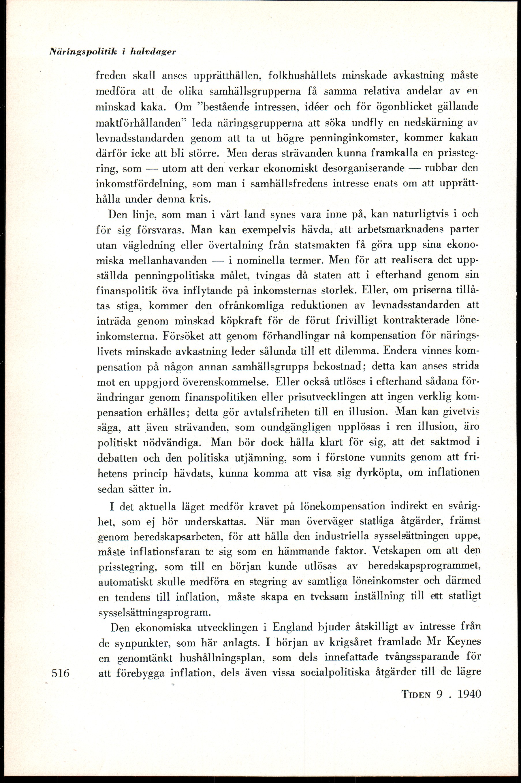Full resolution (JPEG) - On this page / på denna sida - N:r 9, 1940 - Gårdlund, Torsten: Näringspolitik i halvdager