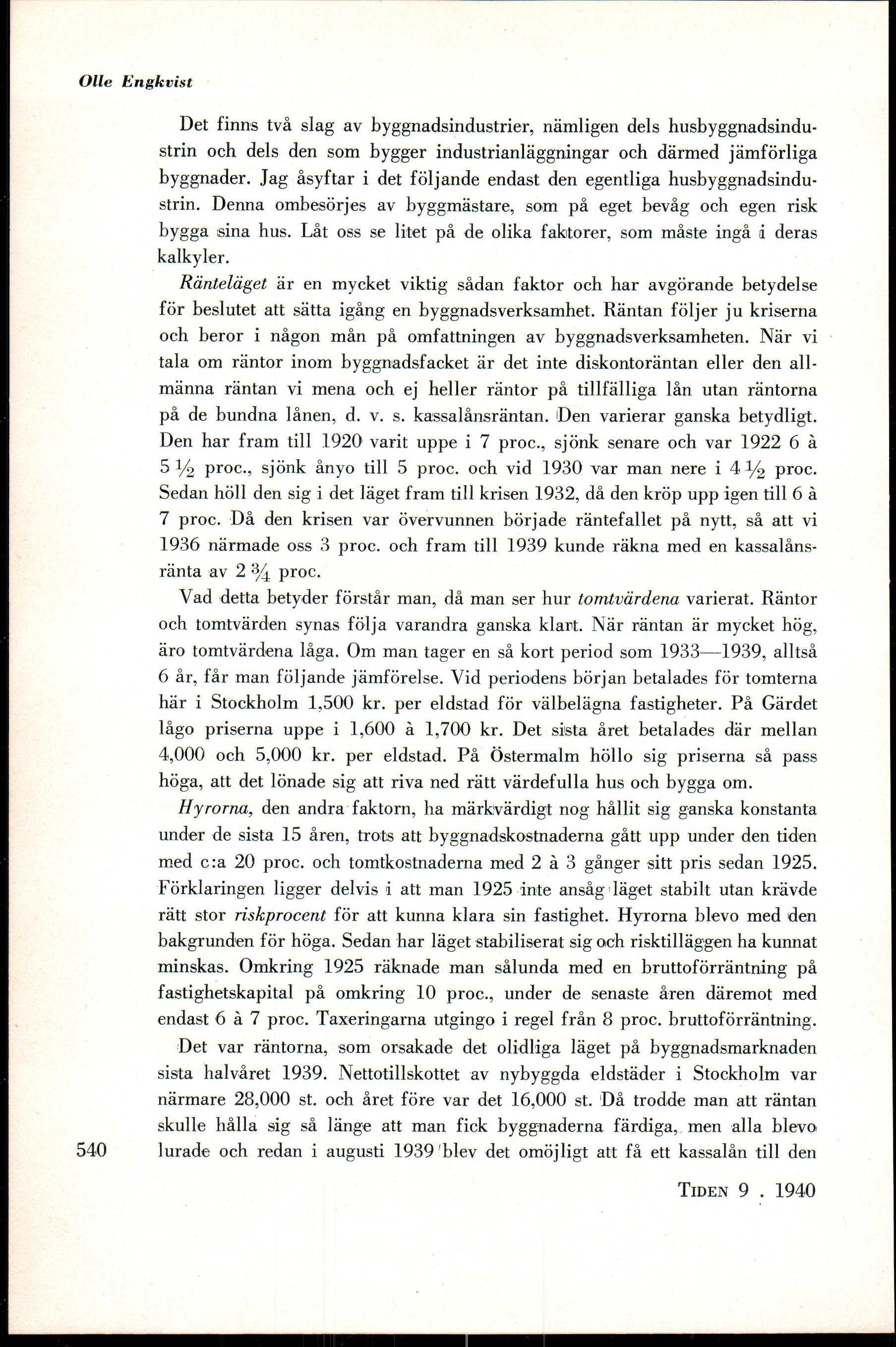 Full resolution (JPEG) - On this page / på denna sida - N:r 9, 1940 - Engkvist, Olle: Byggnadsindustrins läge och framtidsutsikter