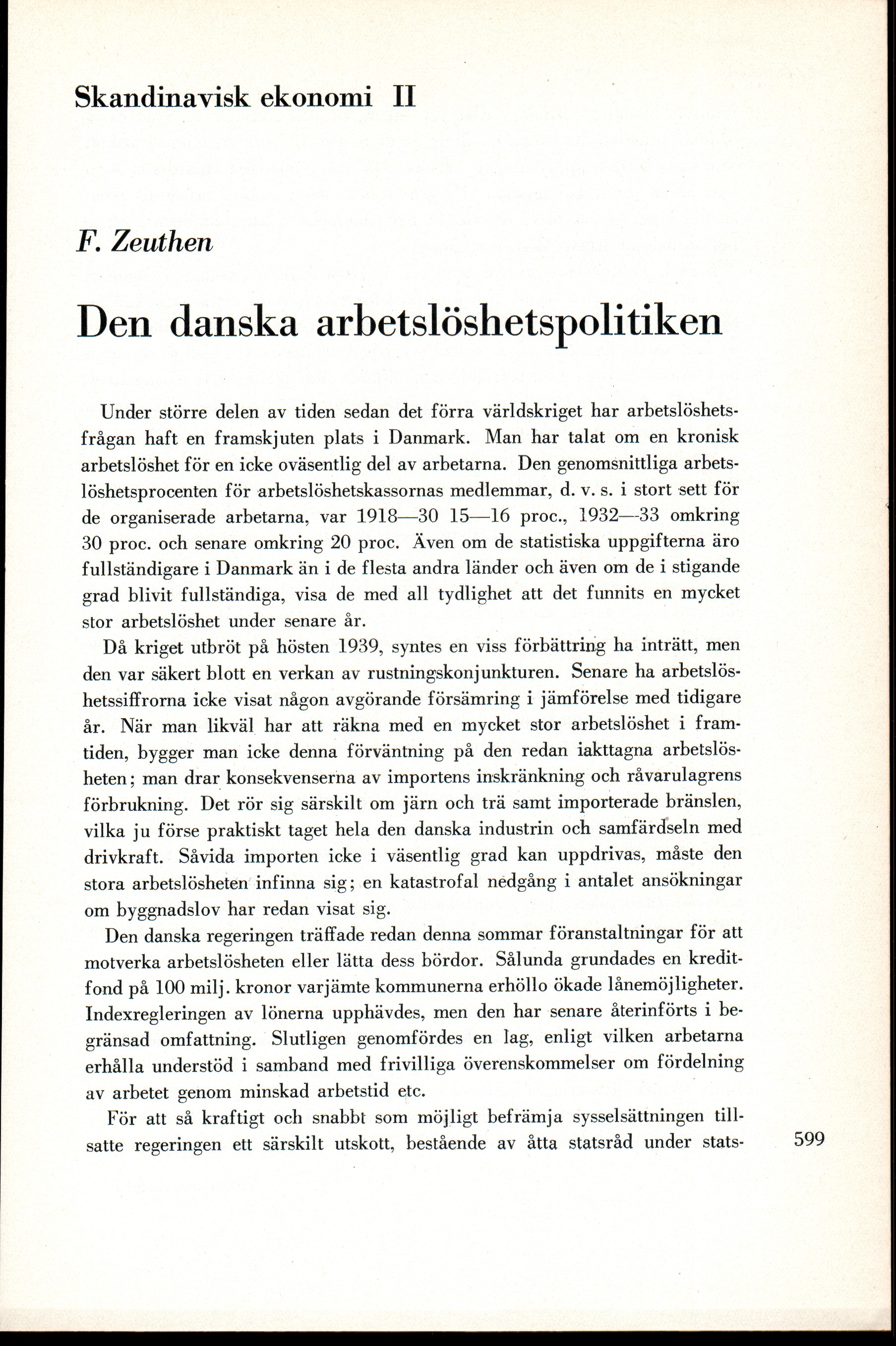 Full resolution (JPEG) - On this page / på denna sida - N:r 10, 1940 - Skandinavisk ekonomi II. Zeuthen, Frederik: Den danska arbetslöshetspolitiken