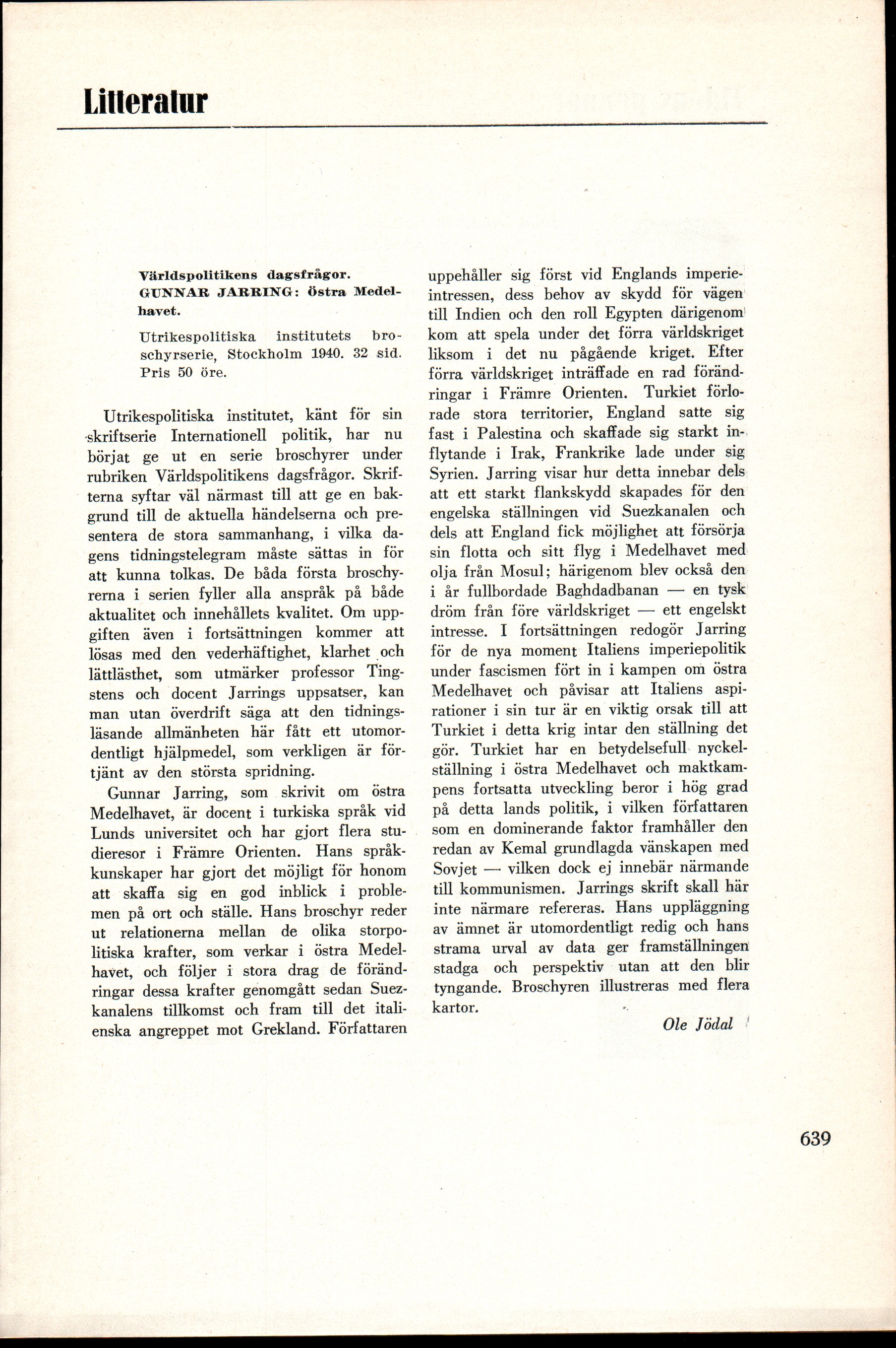 Full resolution (JPEG) - On this page / på denna sida - N:r 10, 1940 - Litteratur - Jarring: Östra Medelhavet (Jödal)