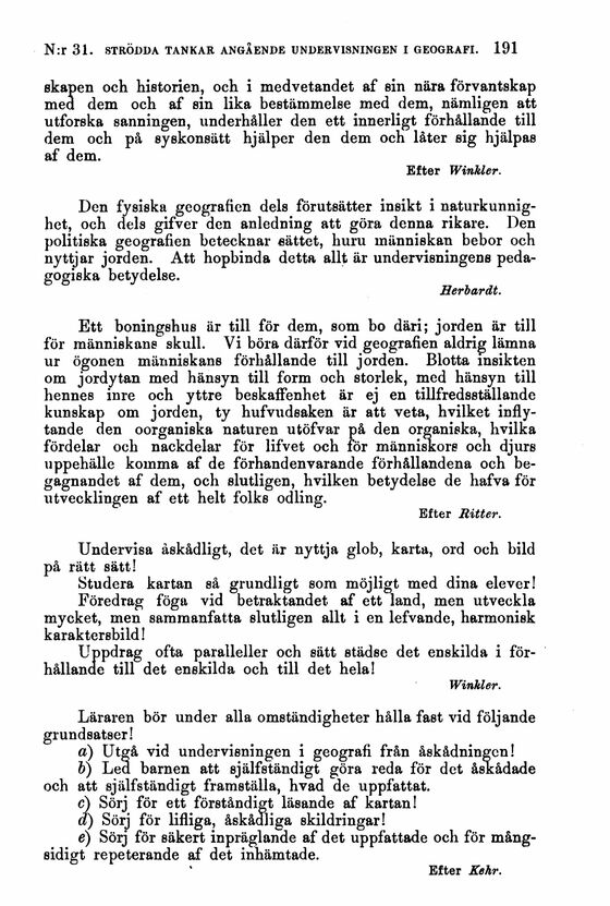 d) Utgå vid undervisningen i geografi från åskådningen!