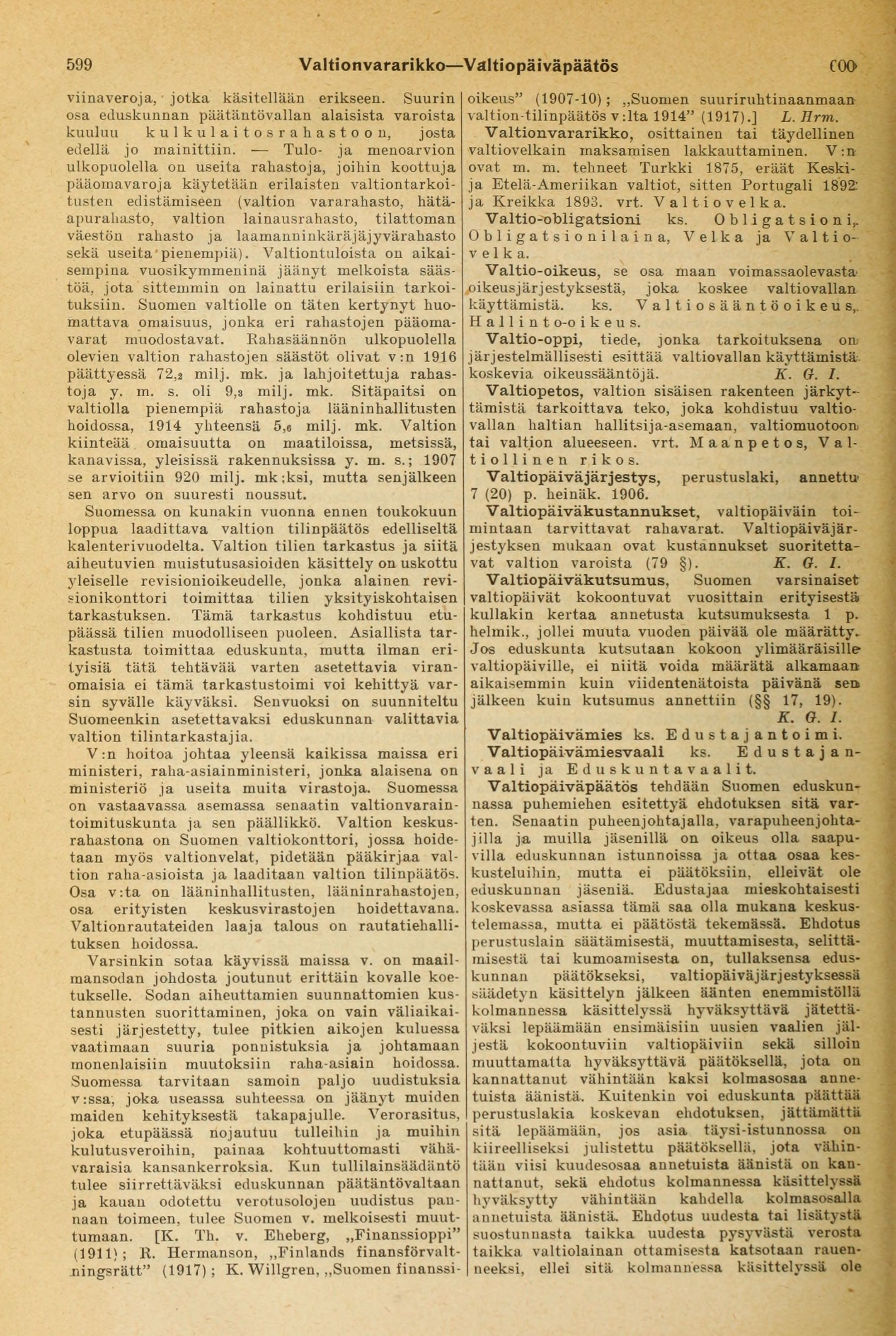 finansförvalt-ningsrätt" (1917); K. Willgren, „Suomen finanssi-