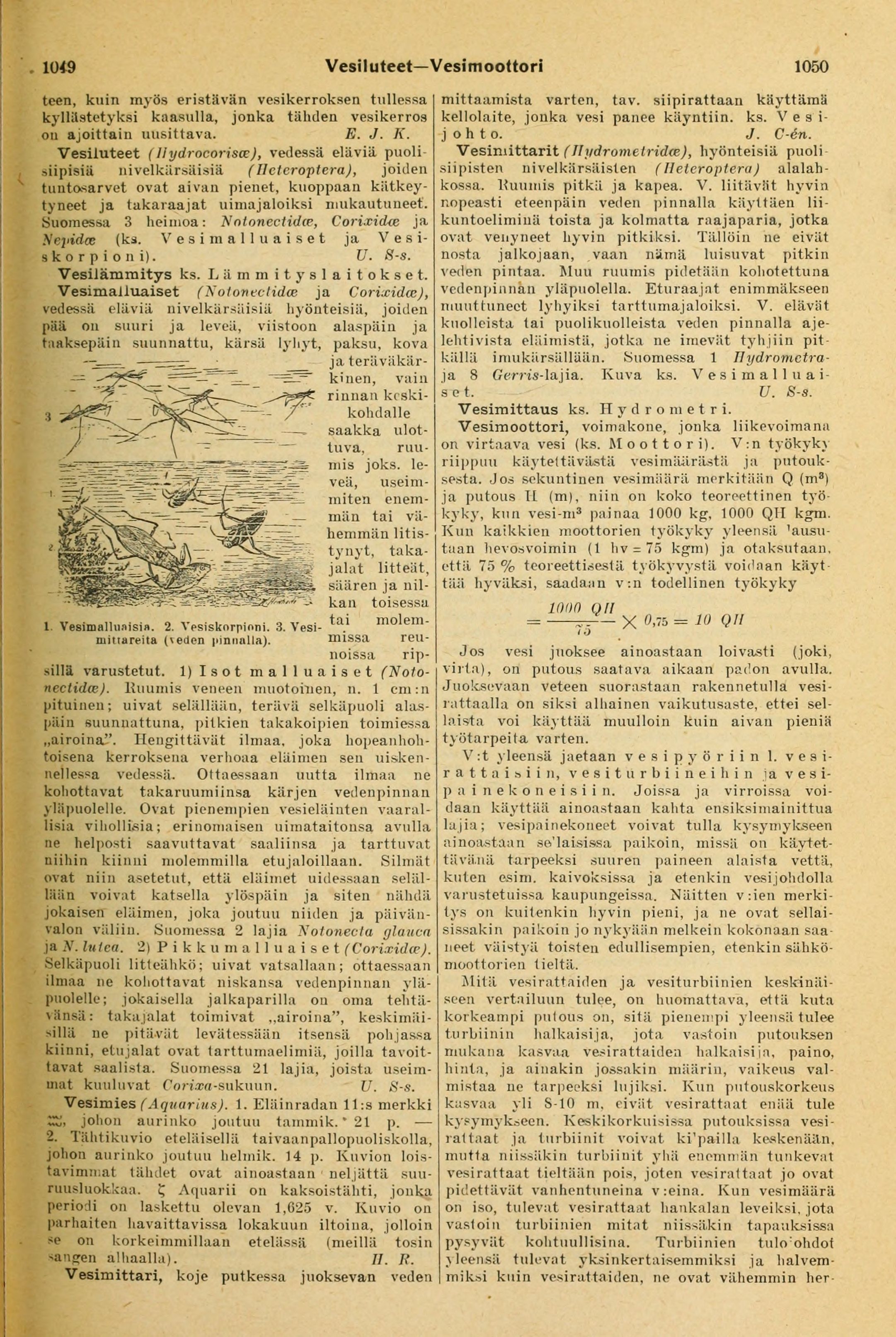 I Vesimalhtaisia. 2. Yesisknrpinni. 3. Vesi