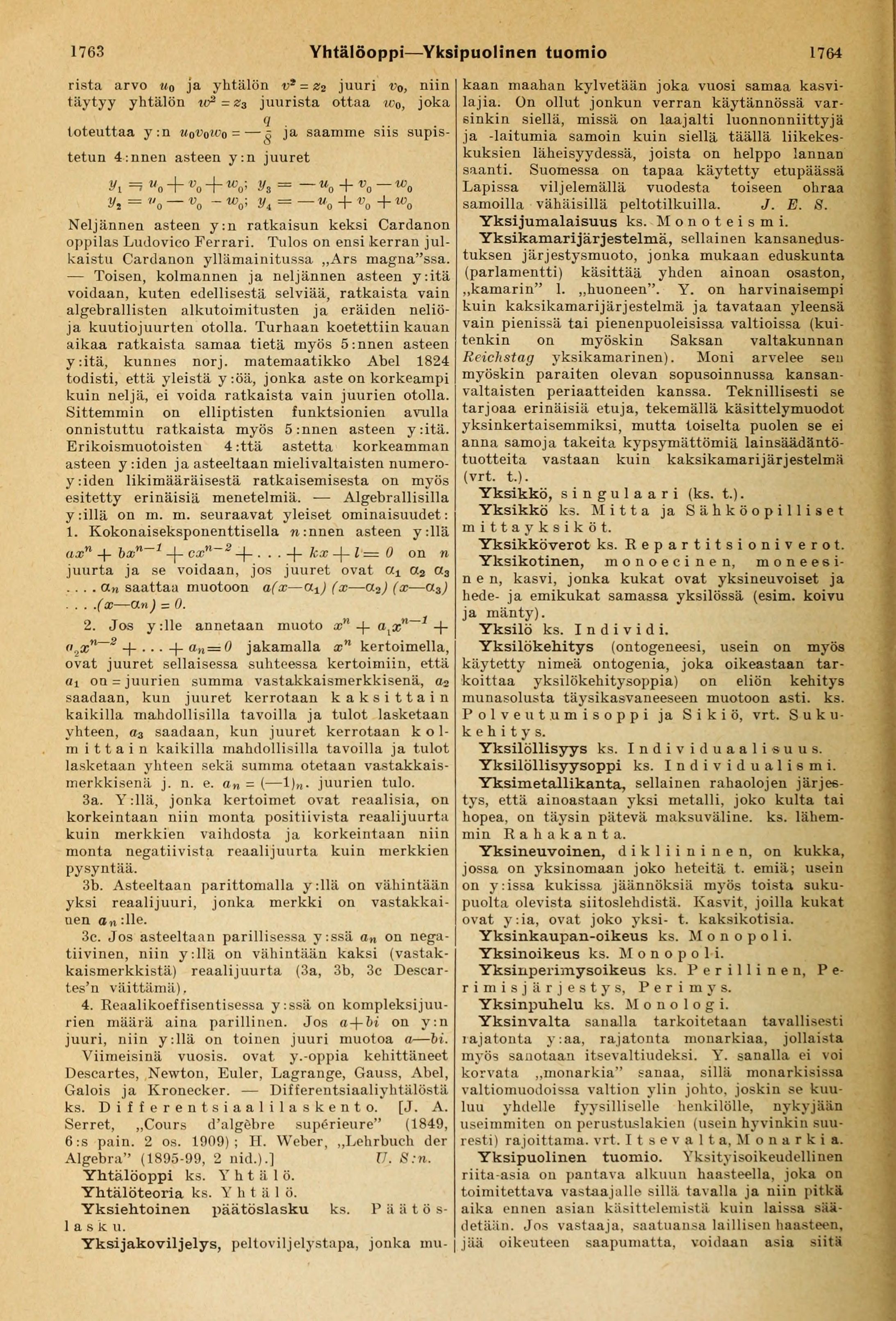 Yhtälöteoria ks. Y h t ä 1 ö.