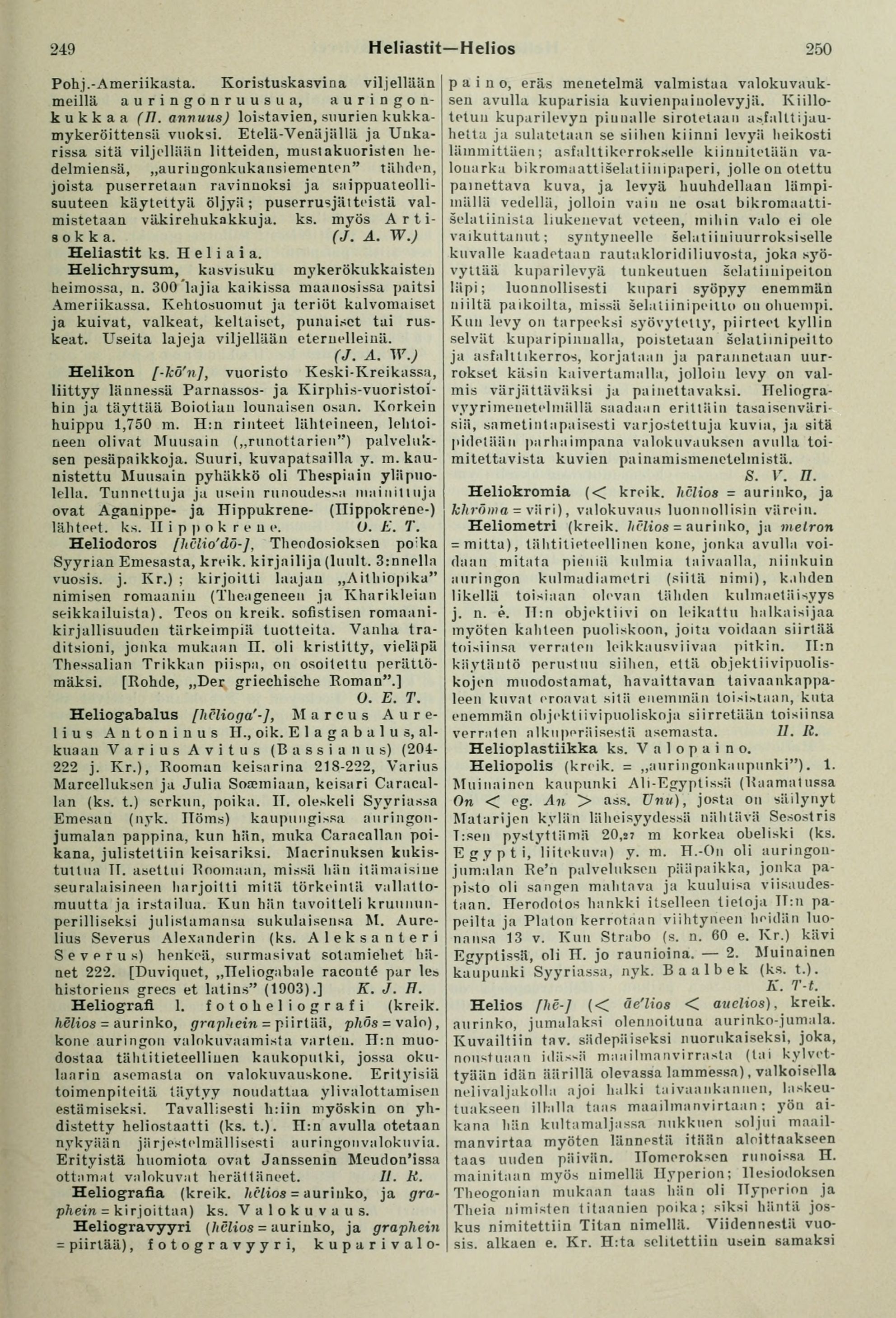 Helios fhë-] (< äe’lios < auelios), kreik.