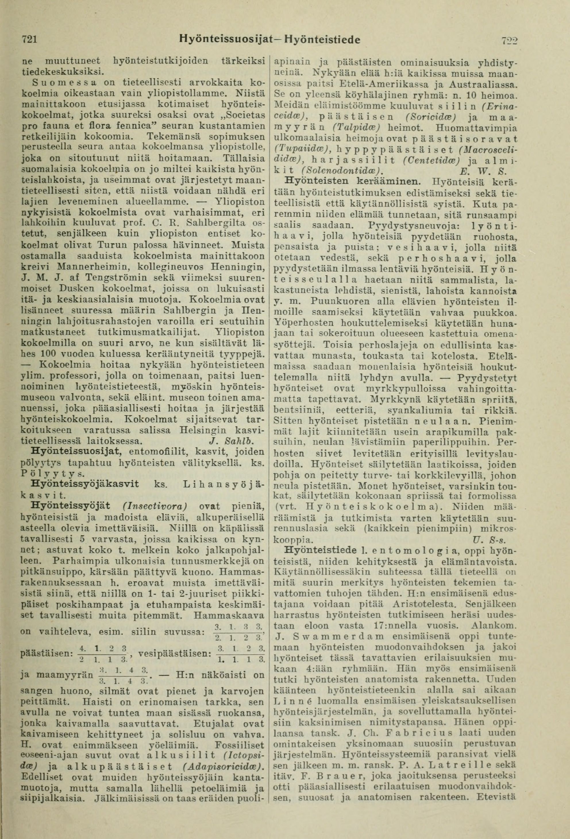 hyönteis-kokoelmat, jotka suureksi osaksi ovat „Societas