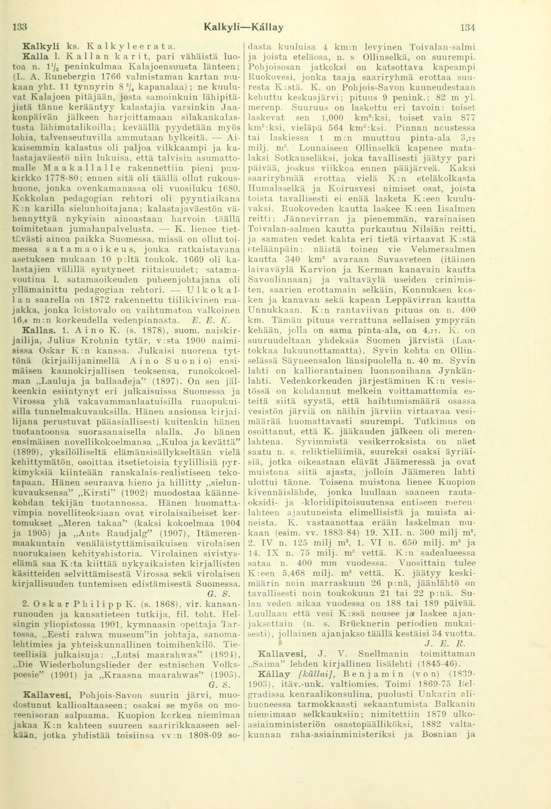 Kallas. 1. Aino K. (s. 1878), suom.