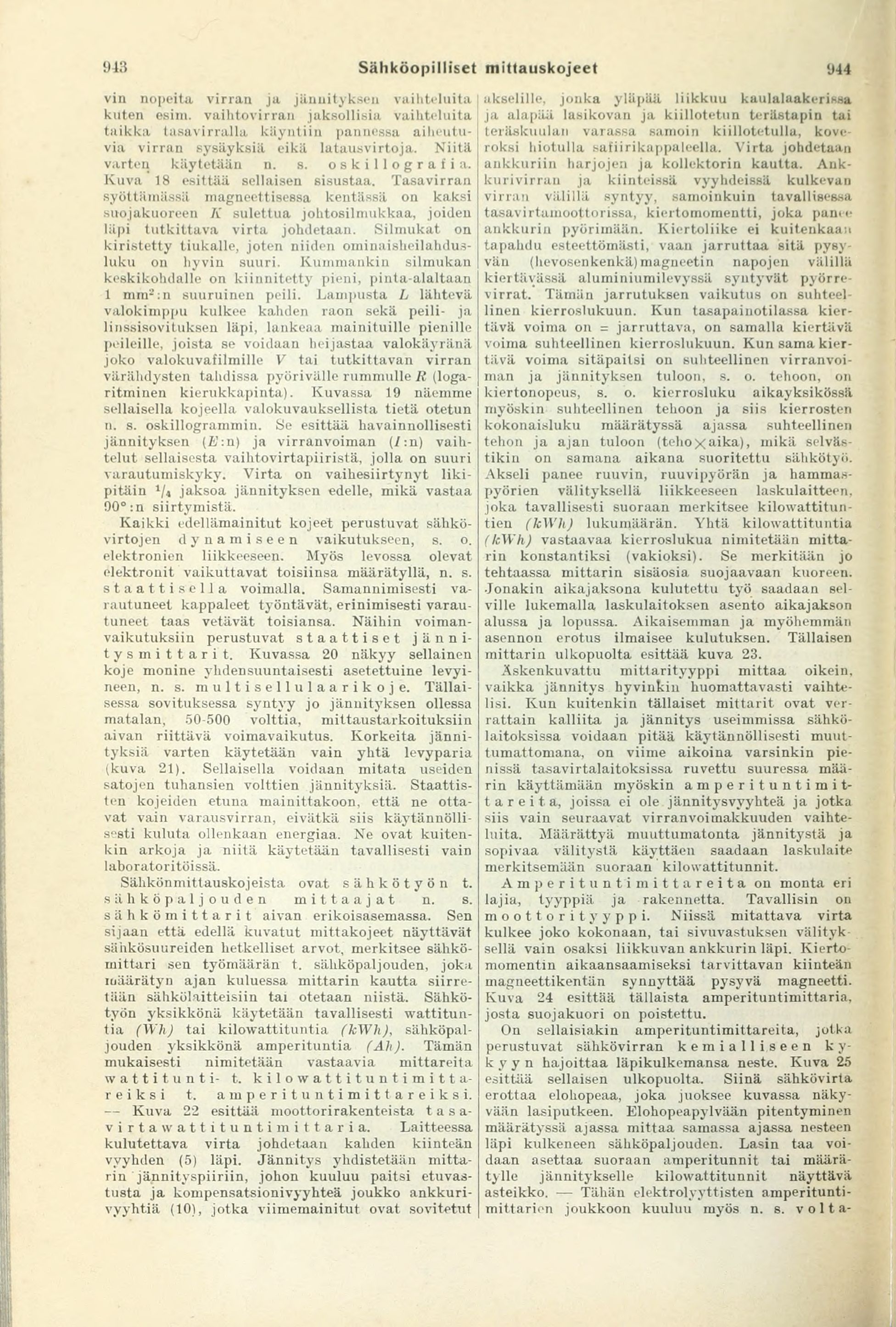 Sähkönmittauskojeista ovat sähkötyön t.