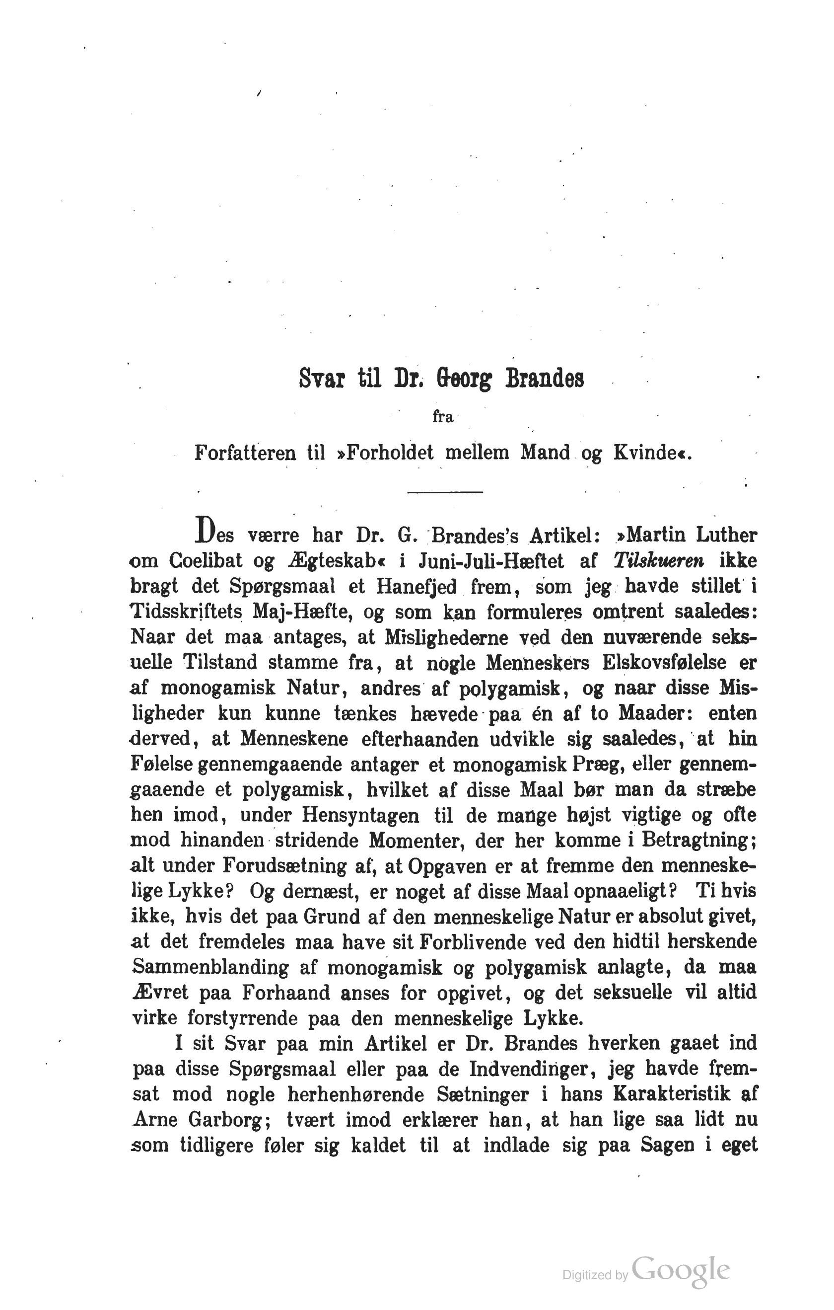 Full resolution (JPEG) - On this page / på denna sida - September - Svar til Dr. phil. G. Brandes. Af Forf. til „Forholdet mellem Mand og Kvinde“