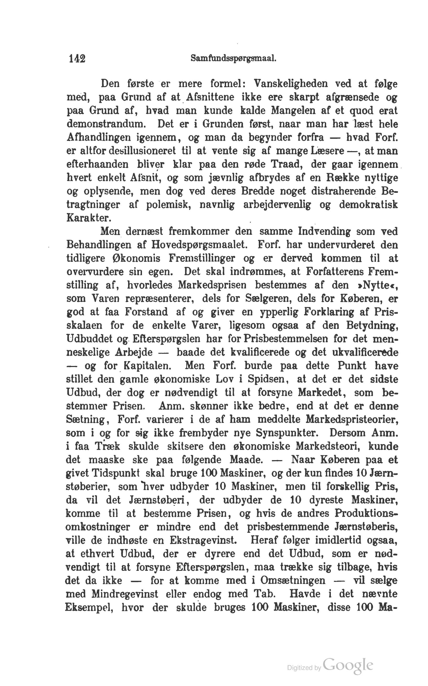Behandlingen af Hovedspørgsmaalet. Forf. har undervurderet den