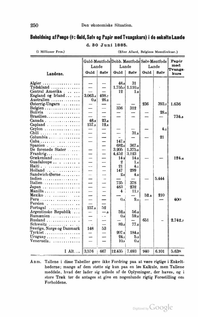 Beholdning af Pengo (o: 8ald,Sølv og Papir med Tvangskurs) i do eokoltoLaado