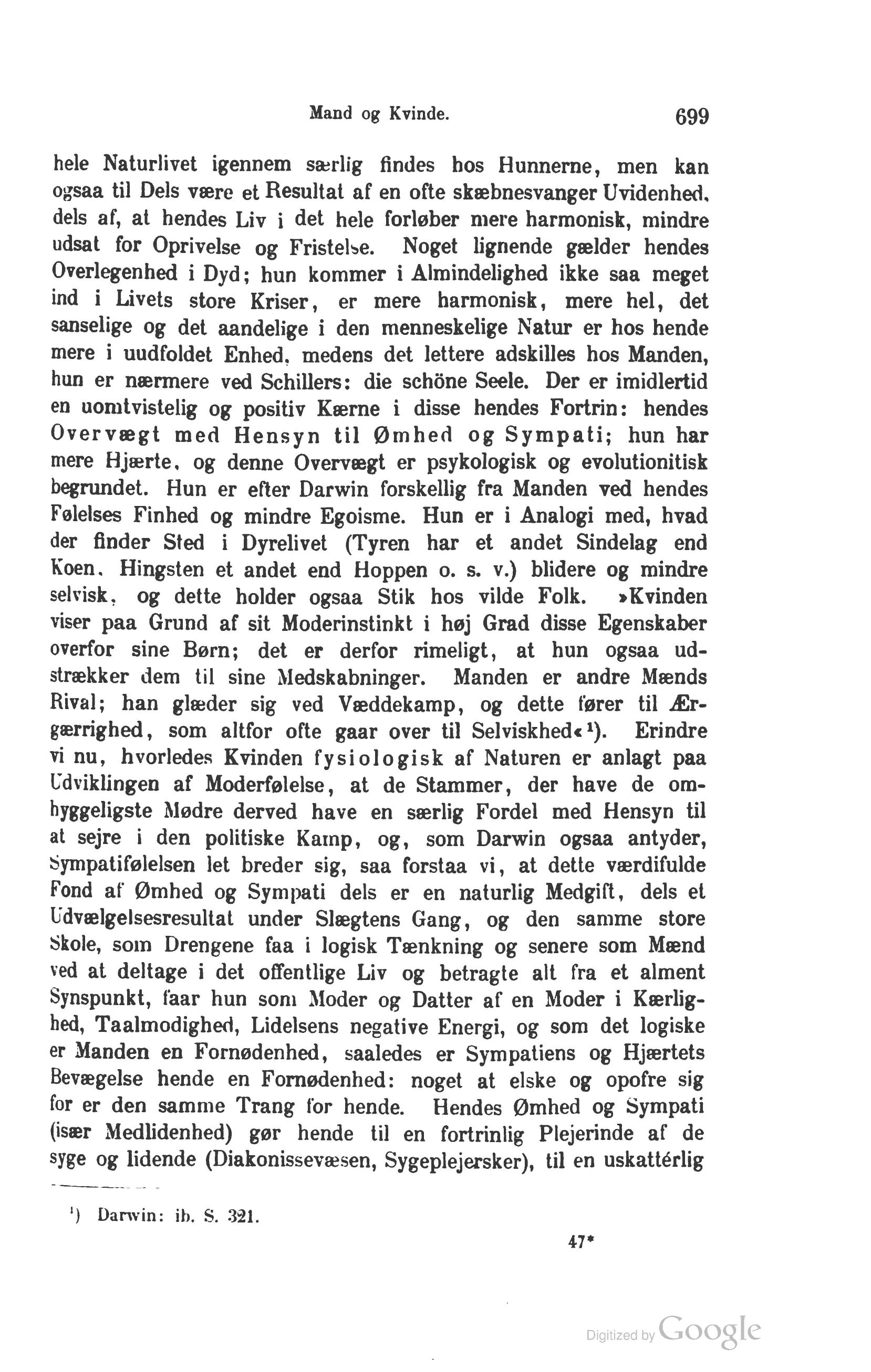 begrundet. Hun er efter Darwin forskellig fra Manden ved hendes
