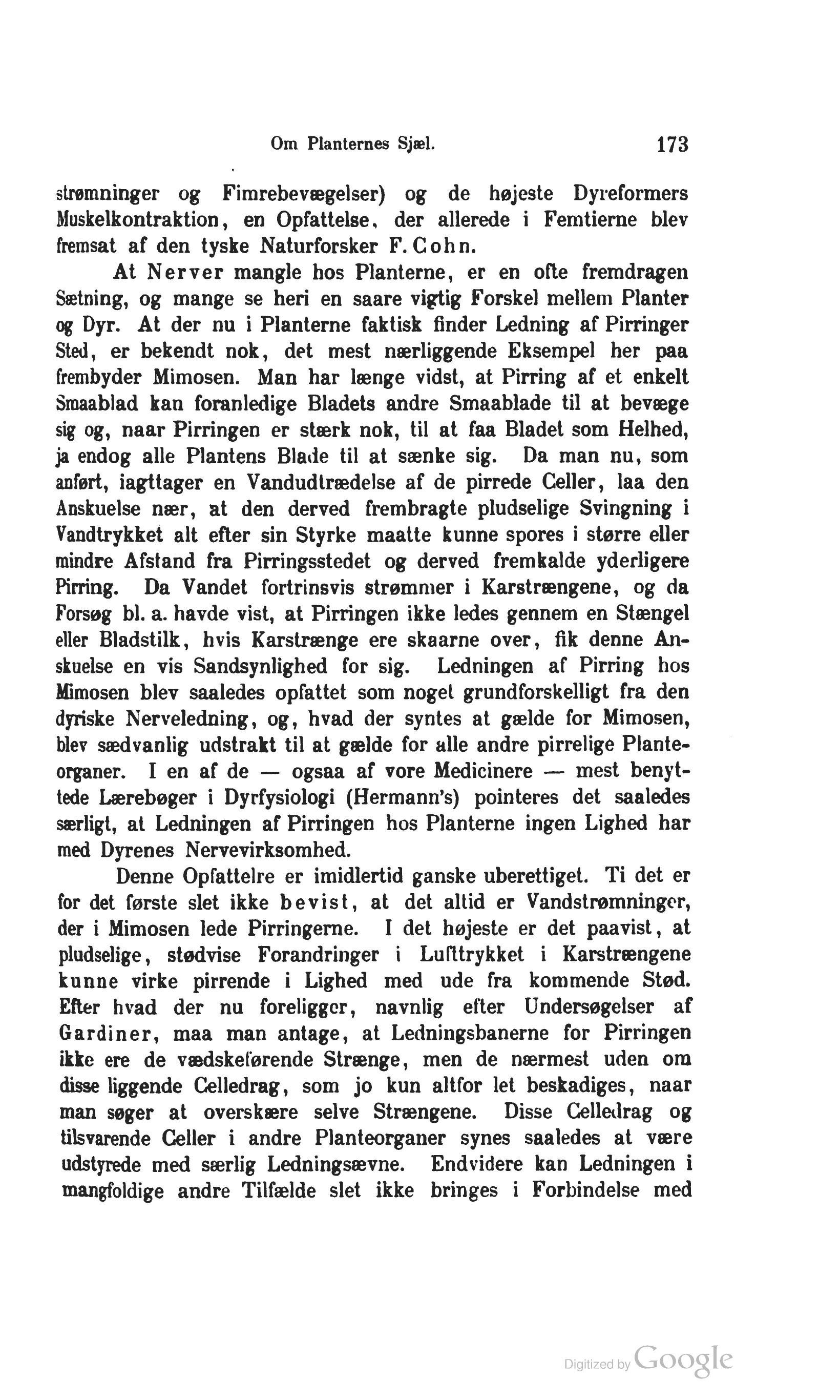 Forsøg bl. a. havde vist, at Pirringen ikke ledes gennem en Stængel