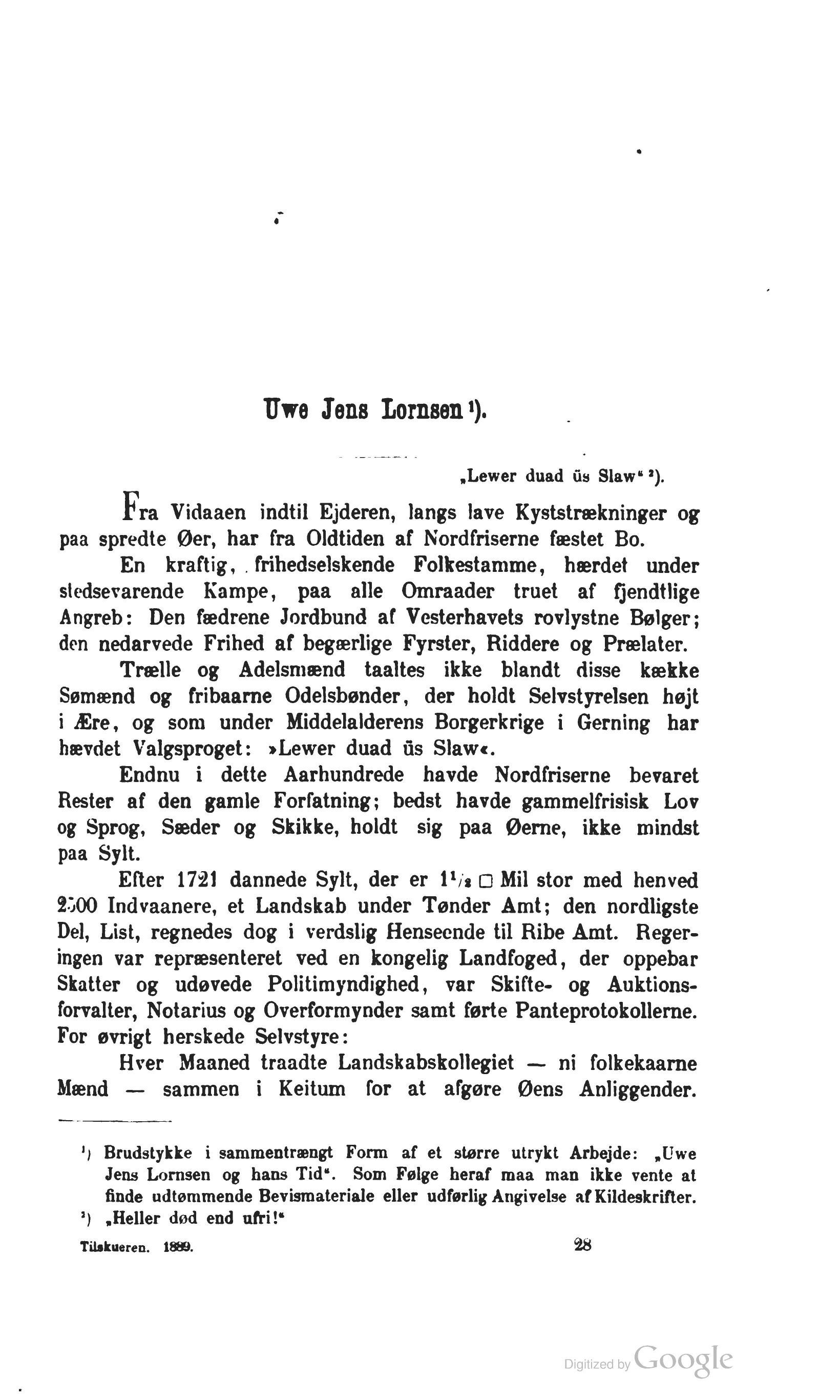 Endnu i dette Aarhundrede havde Nordfriserne bevaret