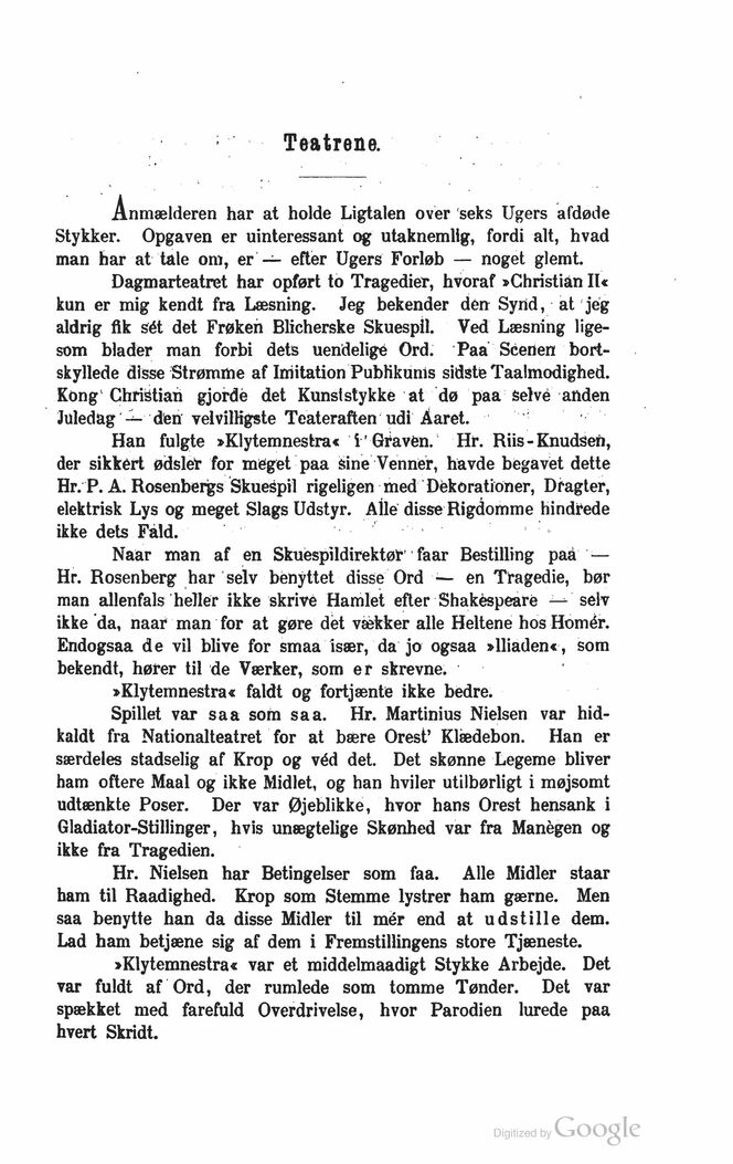 »Klytemnestra« var et middelmaadigt Stykke Arbejde. Det