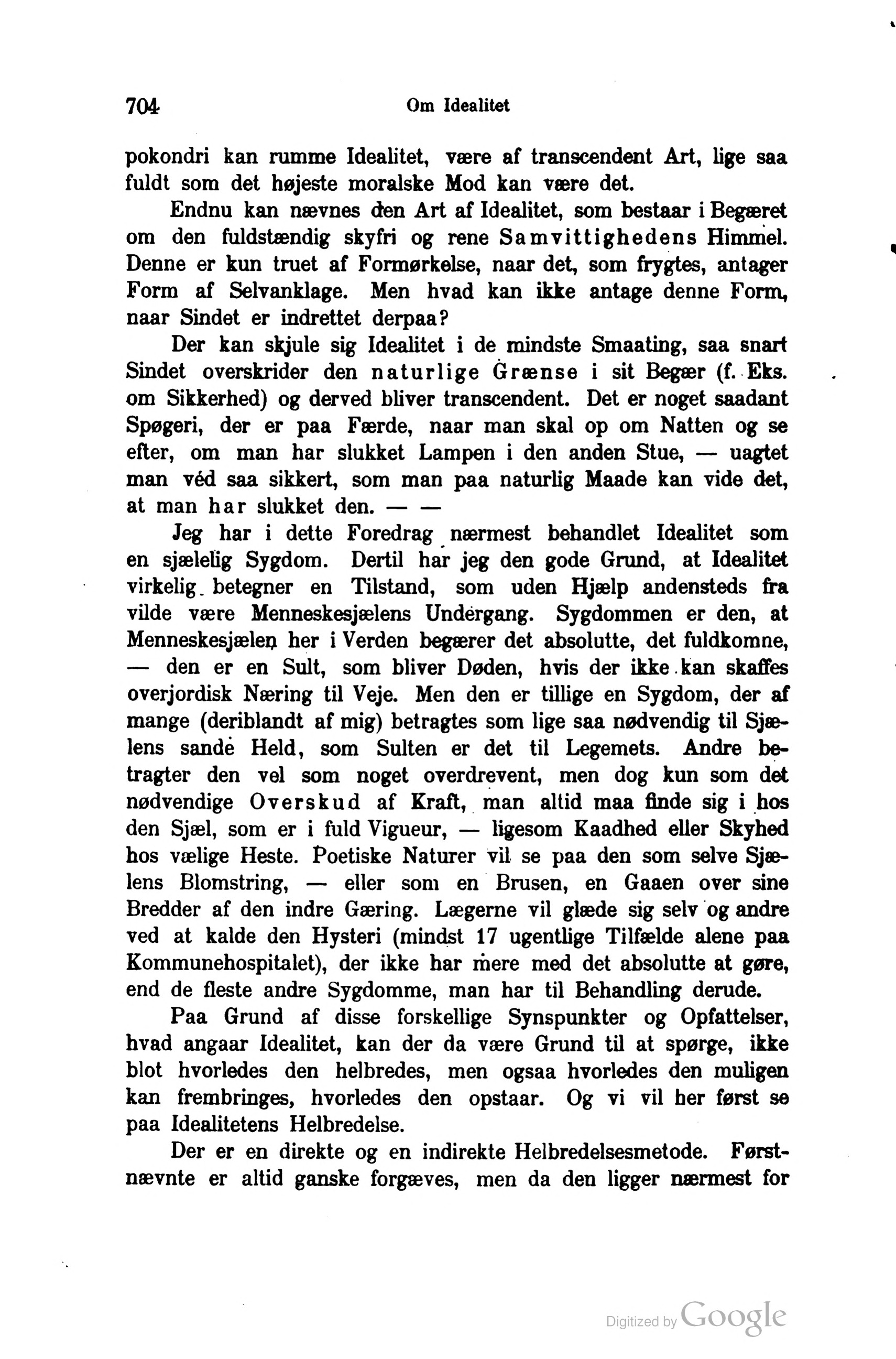 Jeg har i dette Foredrag nærmest behandlet Idealitet som