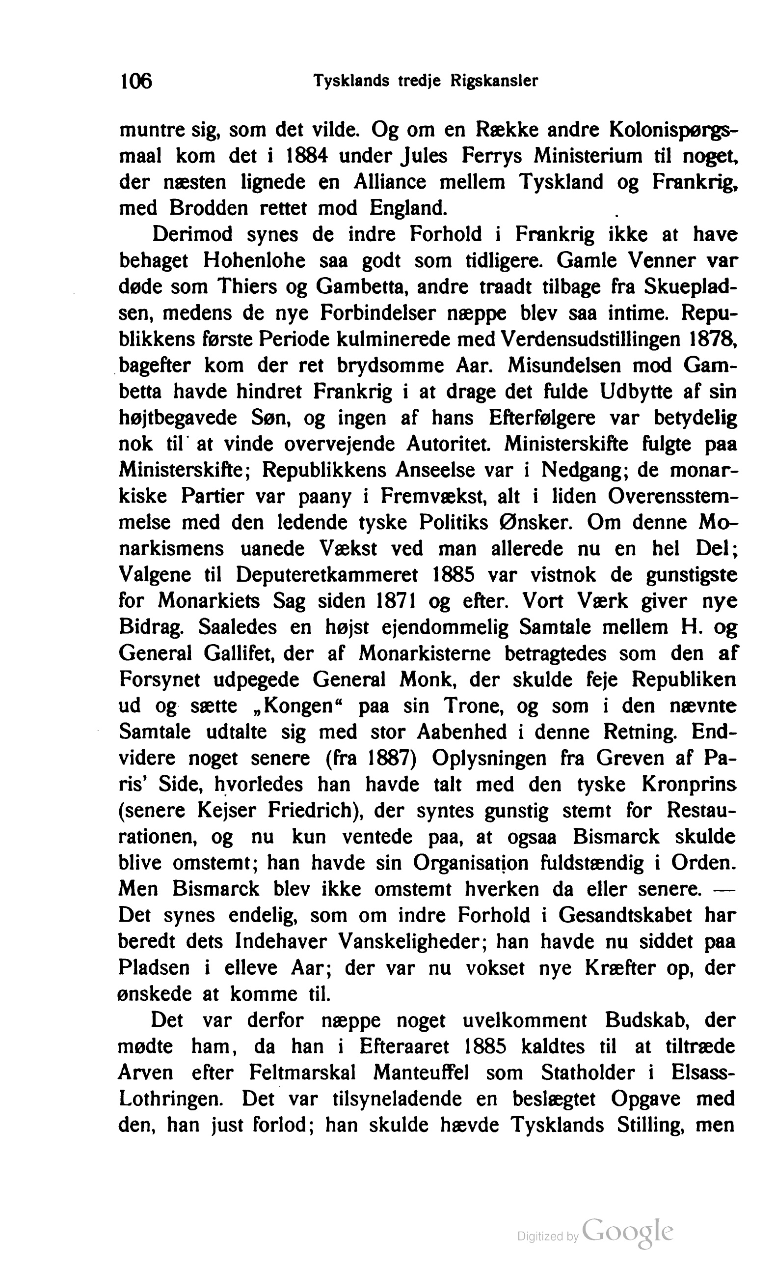 Restaurationen, og nu kun ventede paa, at ogsaa Bismarck skulde
