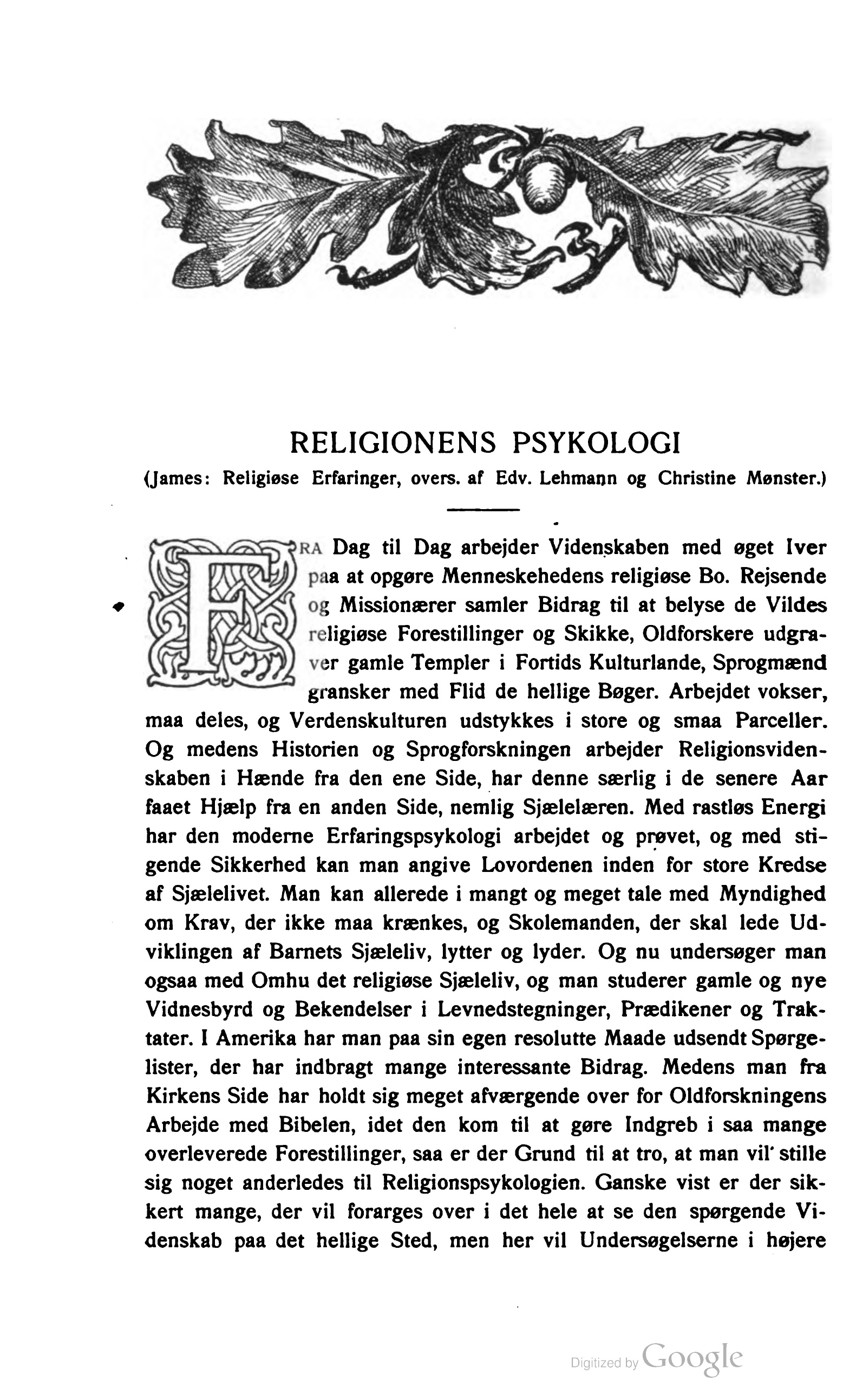 (James: Religiøse Erfaringer, overs, af Edv. Lehmann og Christine Mønster.)