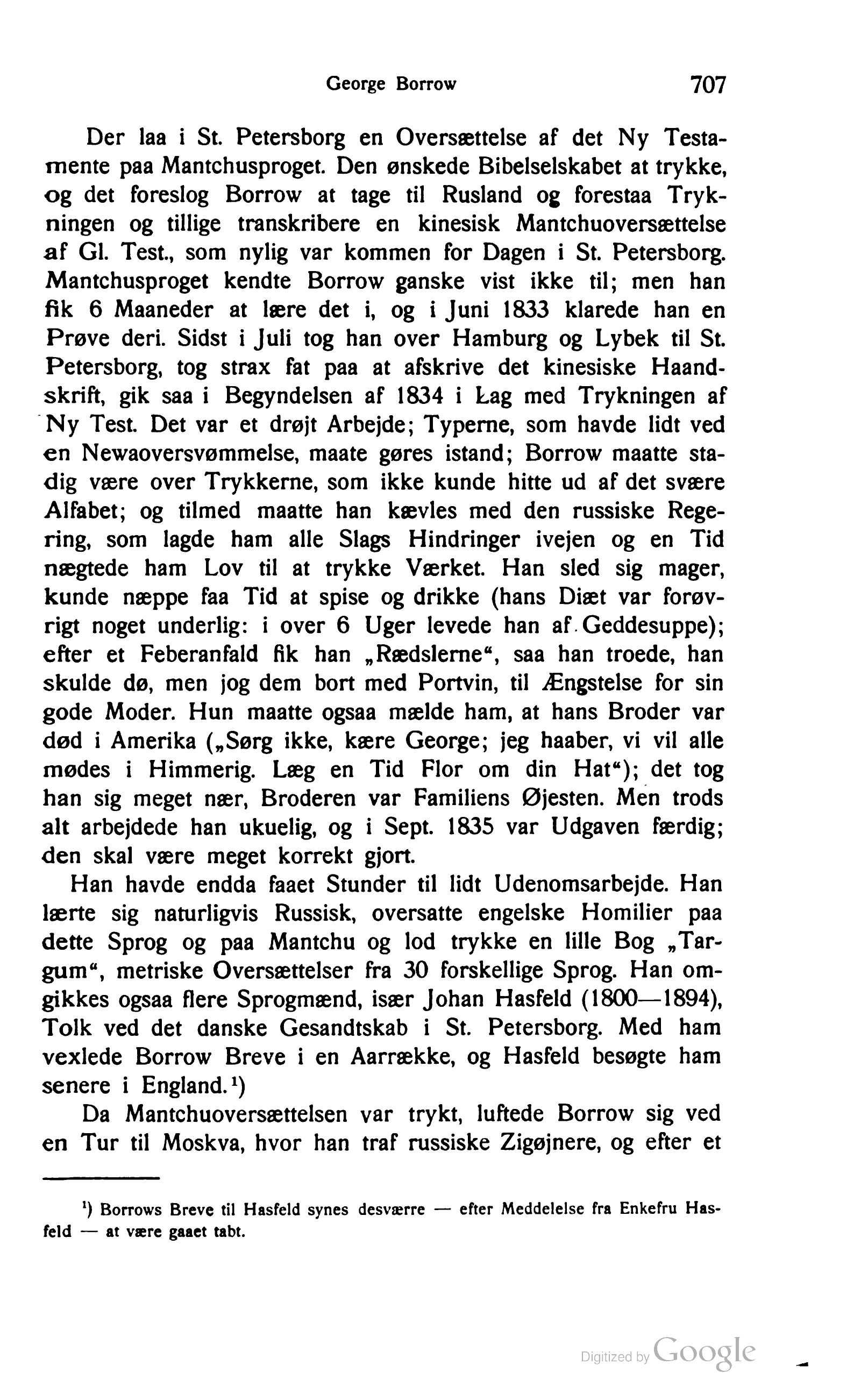 ’) Borrows Breve til Hasfeld synes desværre — efter Meddelelse fra Enkefru