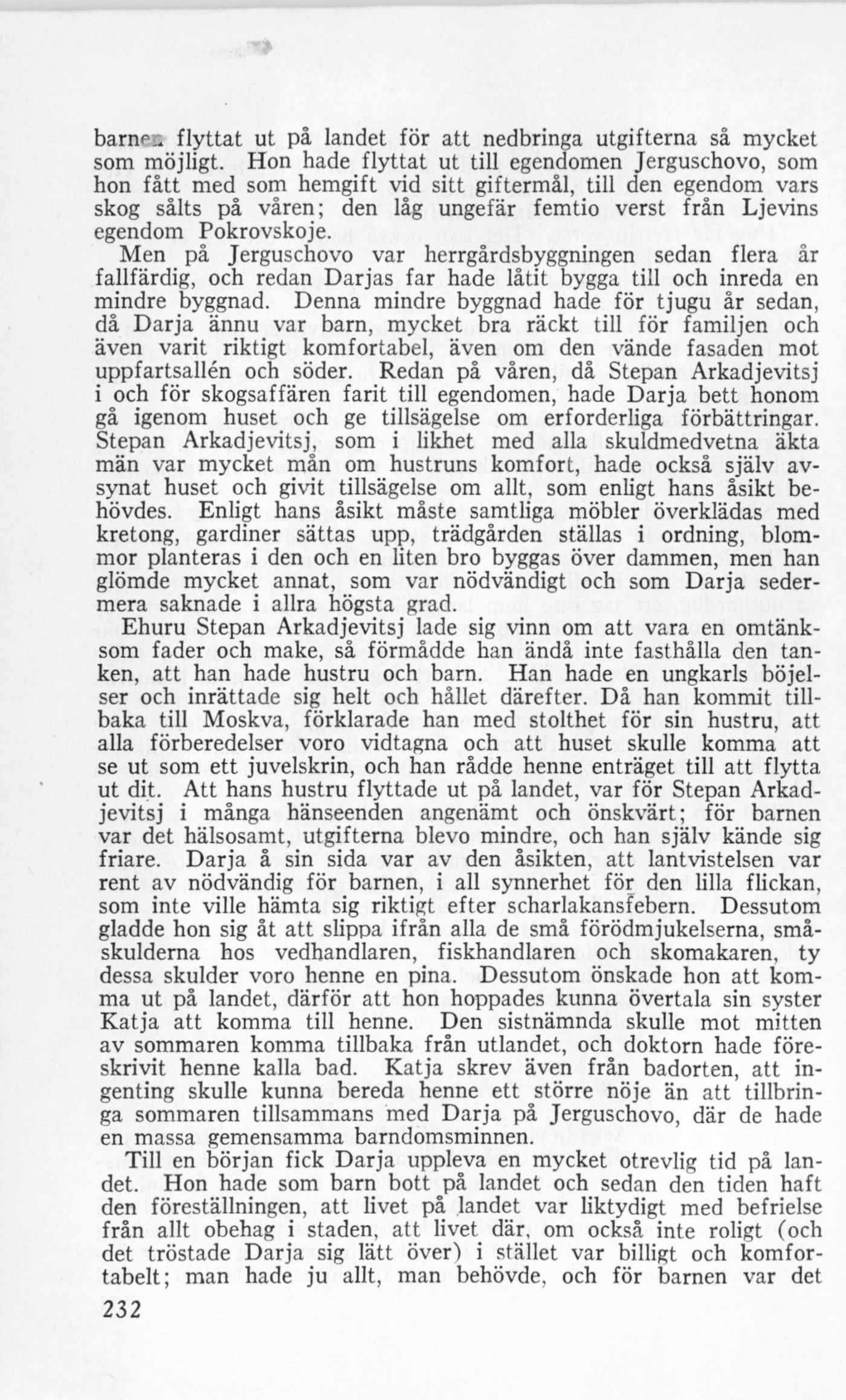 som möjligt. Hon hade flyttat ut till egendomen Jerguschovo, som
