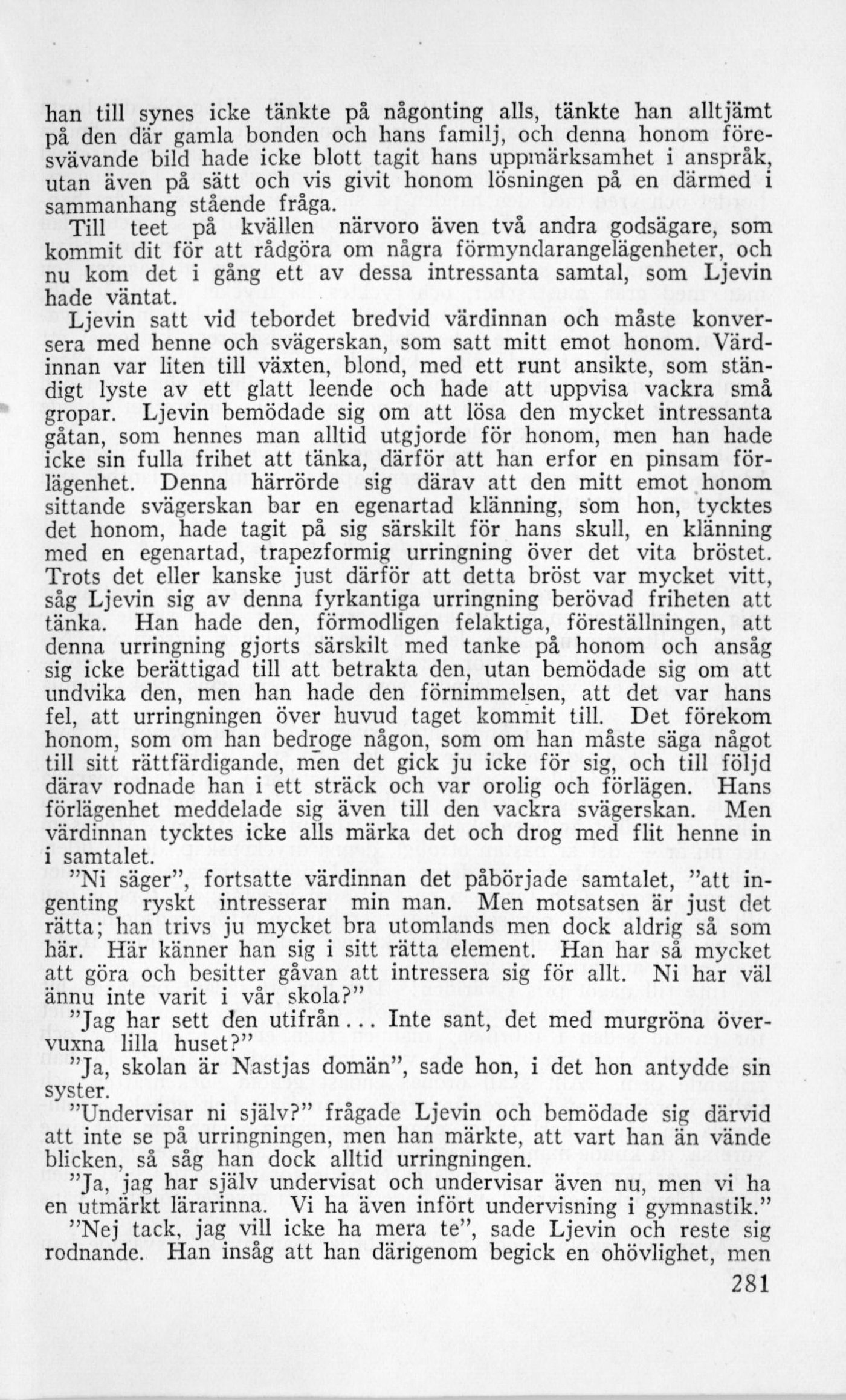 ”Nej tack, jag vill icke ha mera te”, sade Ljevin och reste sig