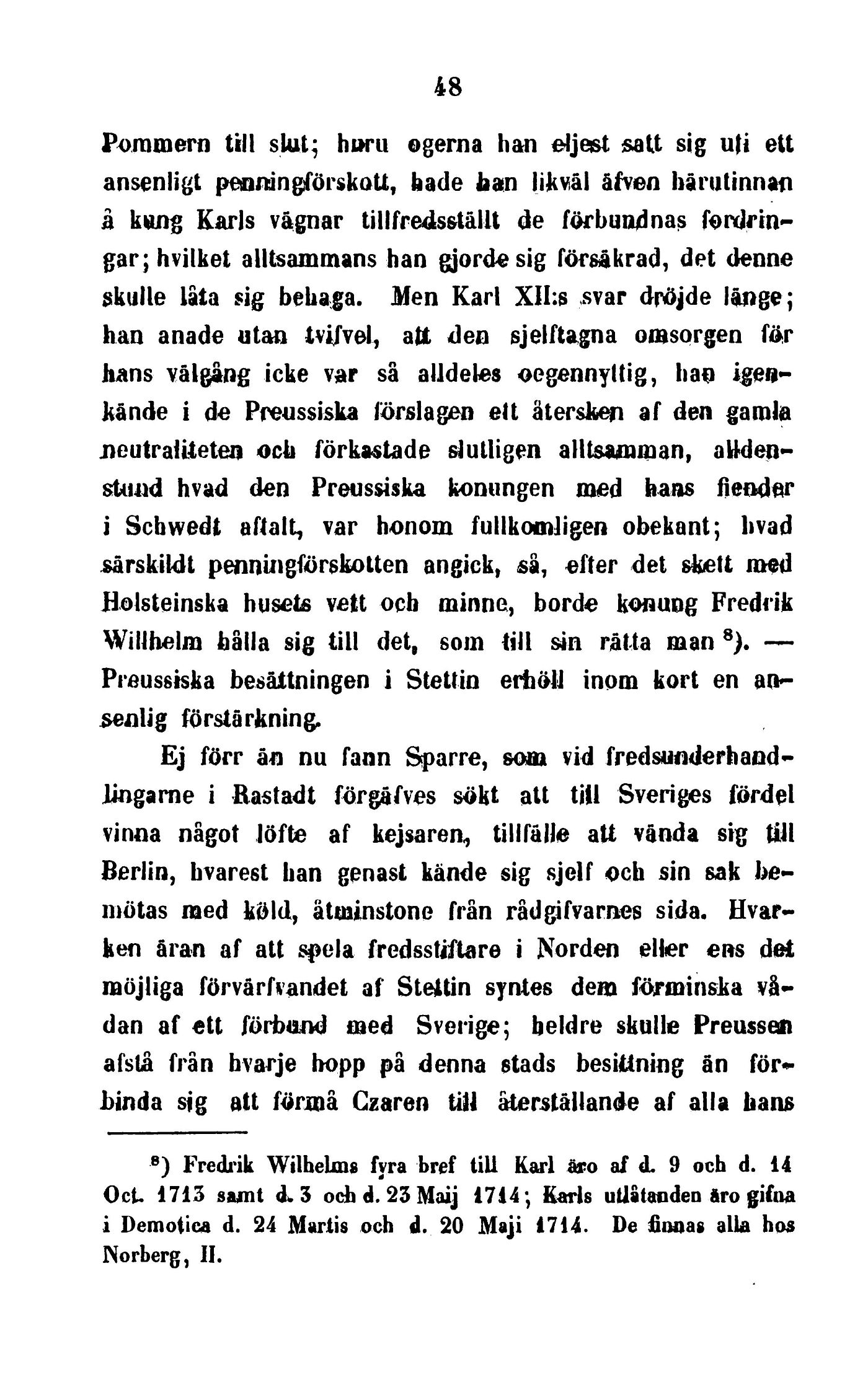 vådan af ett förbund med Sverige; beldre skulle Preussen