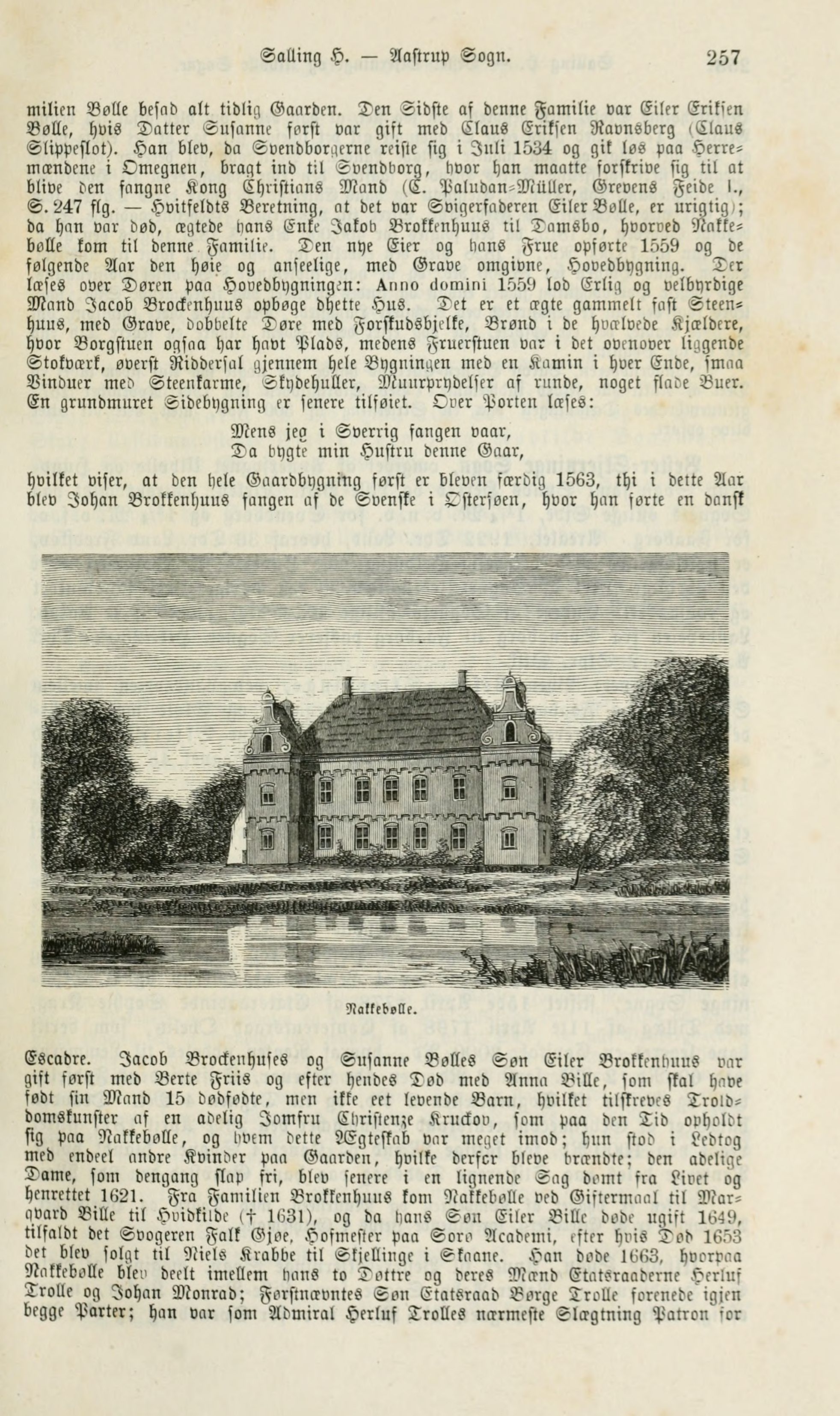følgende Aar den høie og anseelige, med Grave omgivne, Hovedbygning. Der