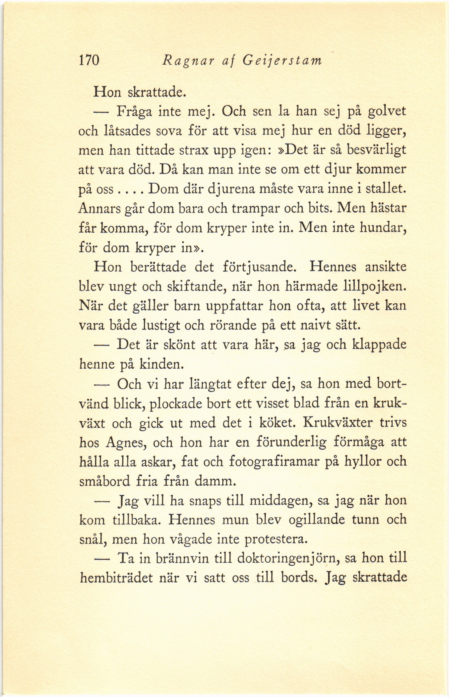 — Ta in brännvin till doktoringenj örn, sa hon till