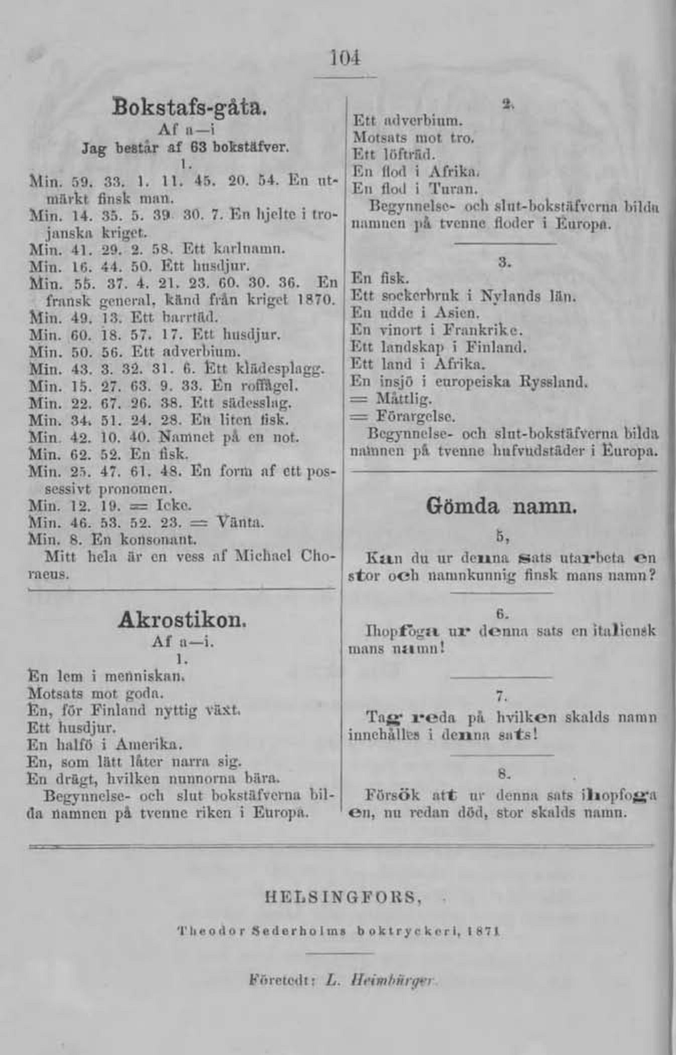 T Ii e o il or Sederholms boktryrki-rl, 1871