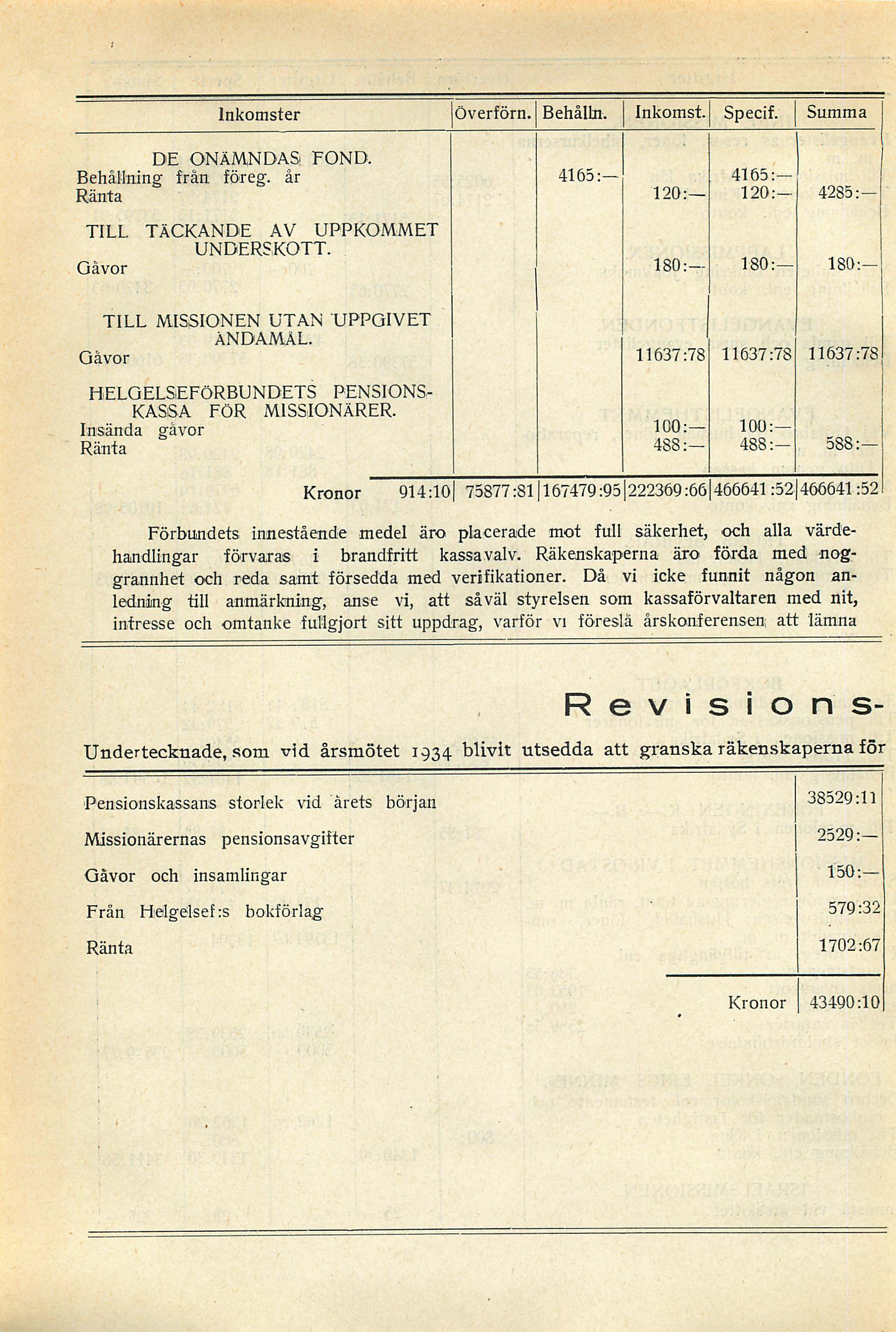 Undertecknade, som vid årsmötet 1934 blivit utsedda att granska räkenskaperna för