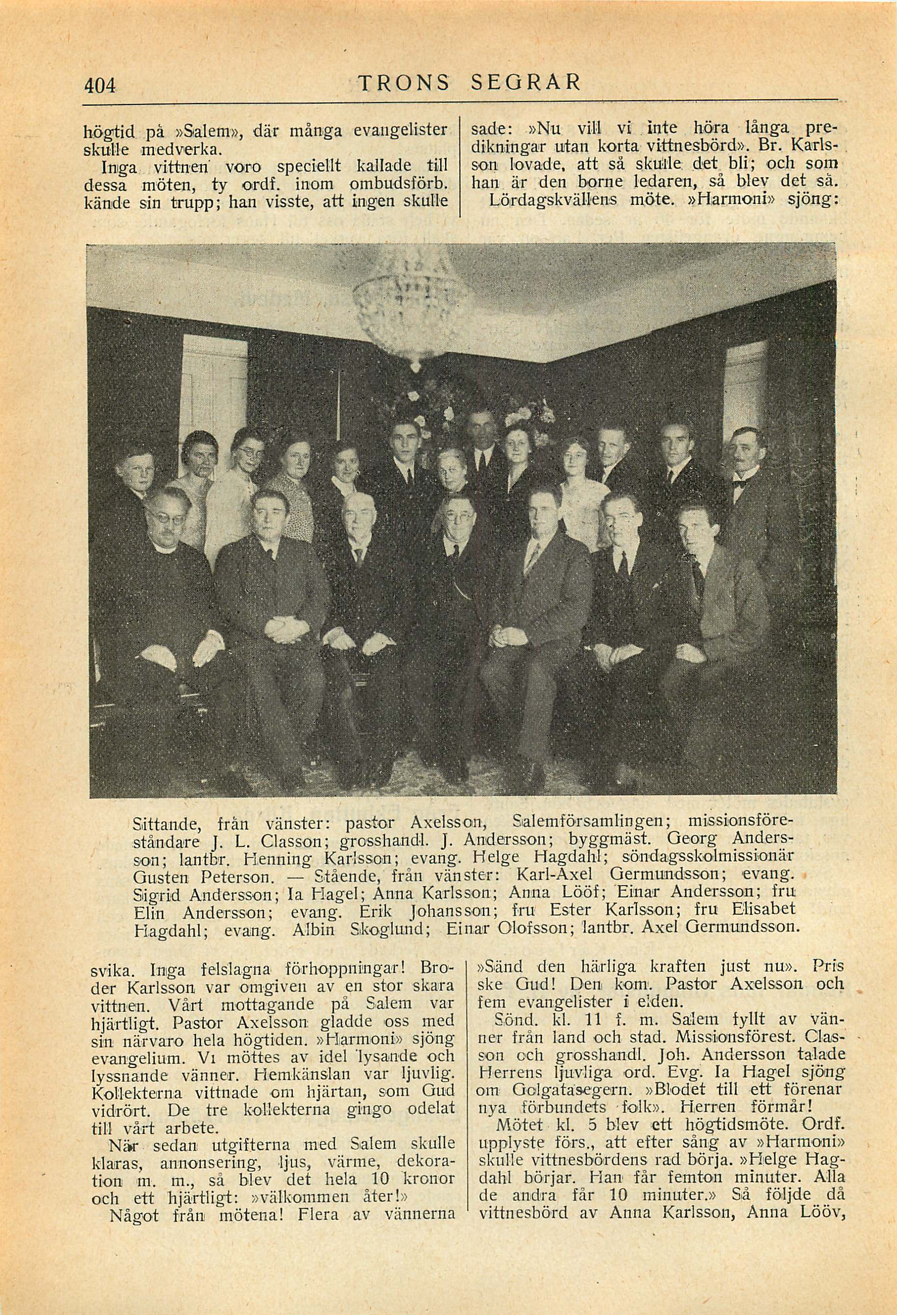 Sittande, från vänster: pastor Axelsson, Salemförsamlingen; missionsföre-