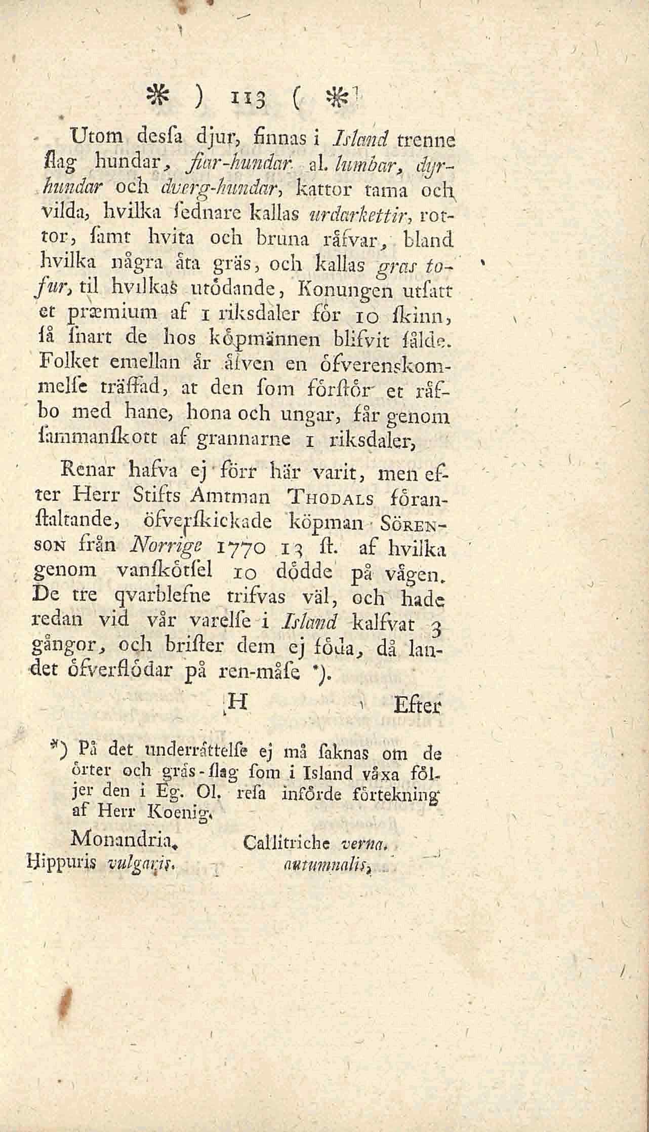 Renar hafva ej förr här varit, men ef-