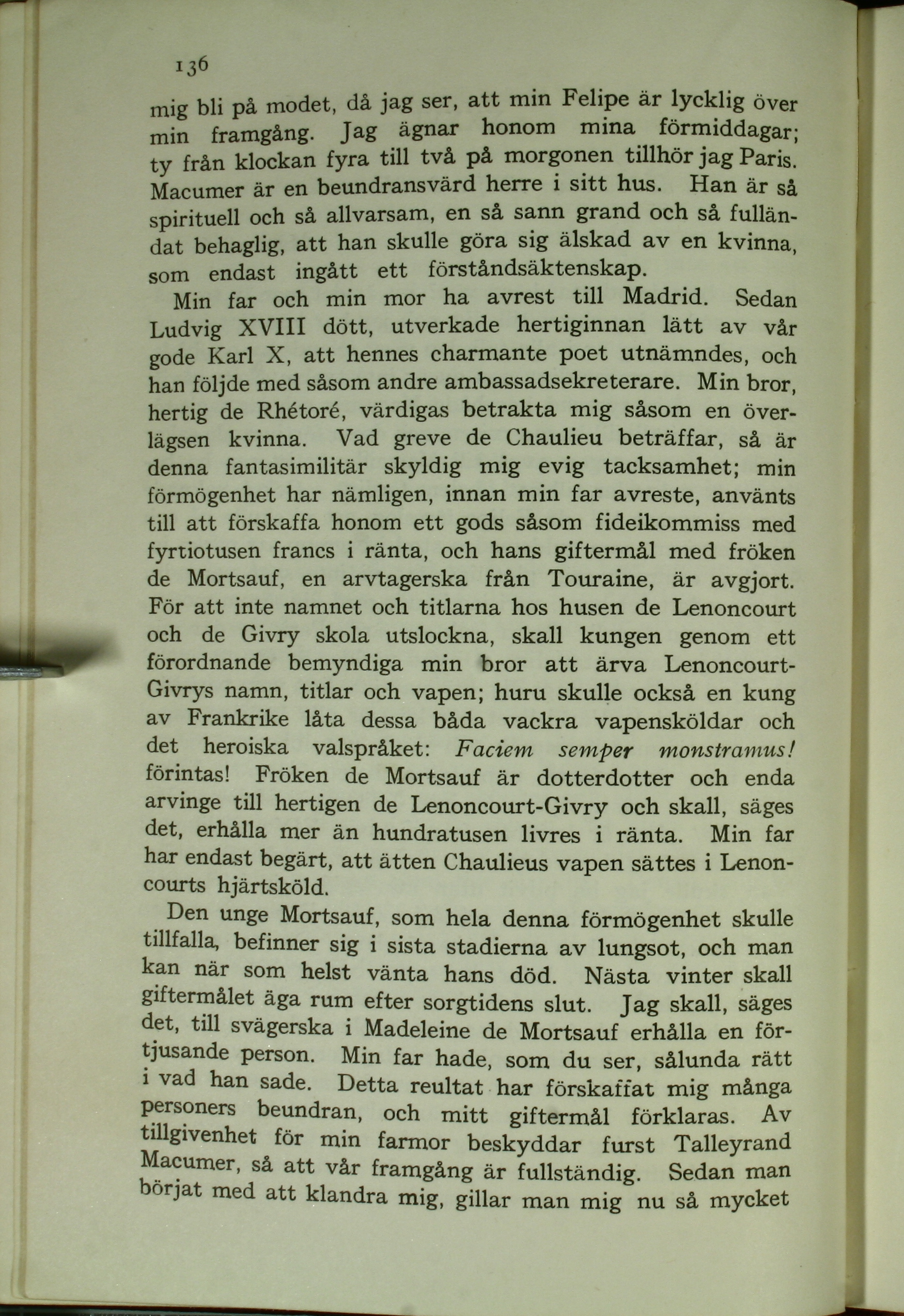 de Mortsauf, en arftagerska från Touraine, är avgjort.
