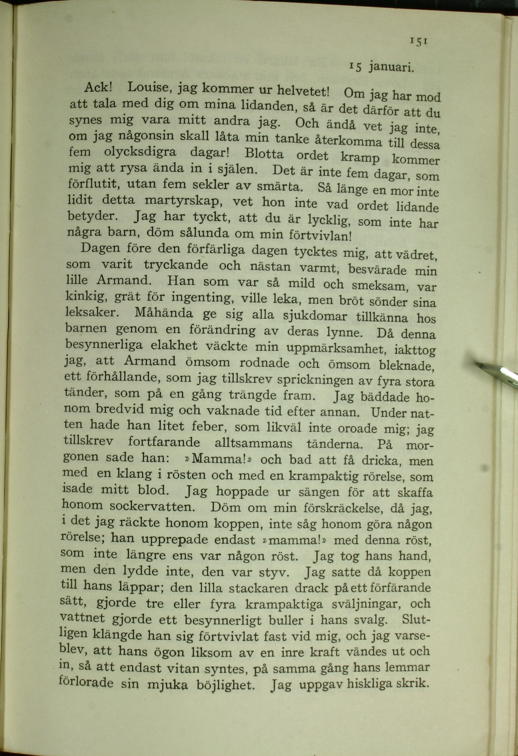 morgonen sade han: »Mamma!» och bad att få dricka, men