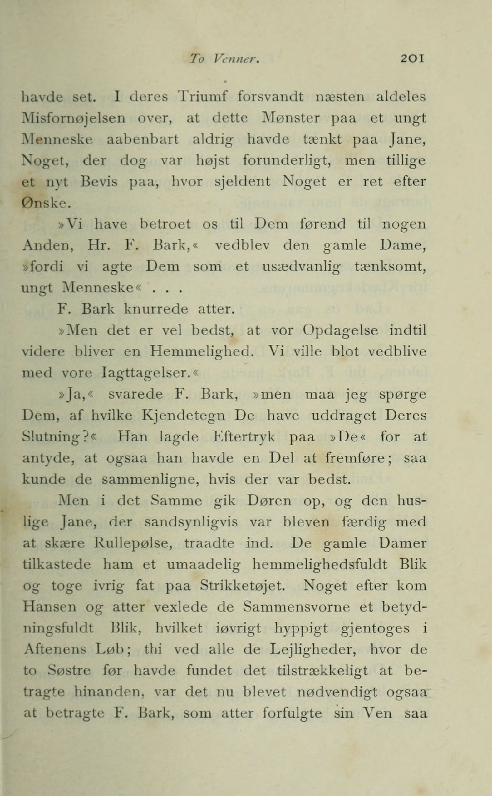 »Ja,« svarede F. Bark, »men maa jeg spørge